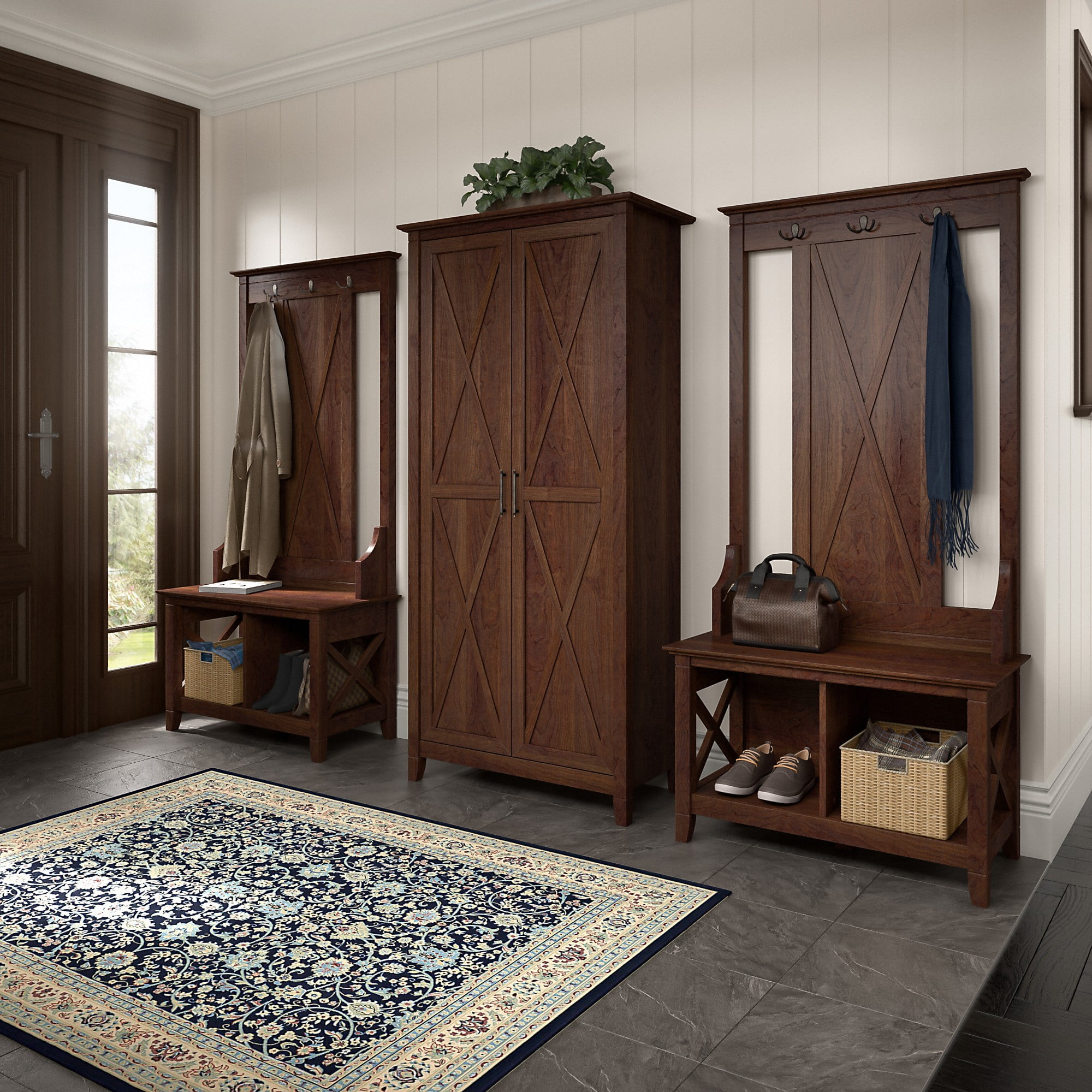 The Bush Furniture Key West Tall Storage Cabinet with Doors offers a practical organization solution that gives your home a touch of casual style. This tall accent cabinet features a versatile design that makes it a perfect choice for use in a home office, living room, entryway or virtually any other residential space. The cabinet contains two fixed shelves and three adjustable shelves to accommodate office supplies and household items of various sizes. Each shelf supports up to 25 pounds, so you’re able to store larger materials with confidence. Cabinet doors open and close on smooth Euro-style hinges for an effortless reach to contents. Unique X pattern accents convey a casual appearance that works well with cottage, coastal and modern farmhouse style. This Tall Cabinet with Doors has been tested to meet ANSI/SOHO standards for safety and performance and is backed by a 1 Year Warranty. Materials: Engineered wood and Laminates Features: 32W x 16D x 66H Tall Storage Cabinet with Doors is an ideal way to organize virtually any work or living space Tall Cabinet contains two fixed shelves and three adjustable shelves for flexible storage Each shelf supports up to 25 pounds Thoughtfully designed for maximum stability and includes hardware to anchor the large cabinet to a wall Tall accent cabinet’s doors utilize smooth Euro-style hinges for an effortless open and close Post leg design and unique X pattern accents convey a casual look that works well with cottage, coastal and modern farmhouse style Available in your choice of slightly distressed Washed Gray, Bing Cherry, Pure White Oak and Cape Cod Gray finish options Bush Furniture’s commitment to safety includes rigorous testing that meets or exceeds ANSI/SOHO standards Backed by a 1 Year Manufacturer’s Warranty See the full Key West Collection for coordinating items available, including storage, home office and bathroom furniture Specifications: Product Dimensions: 2 Door Tall Storage Cabinet: 31.69″W x 15.79″D x 65.98″H Product Weight: 103.55 lbs Assembly Required: Yes Product Color: Bing Cherry