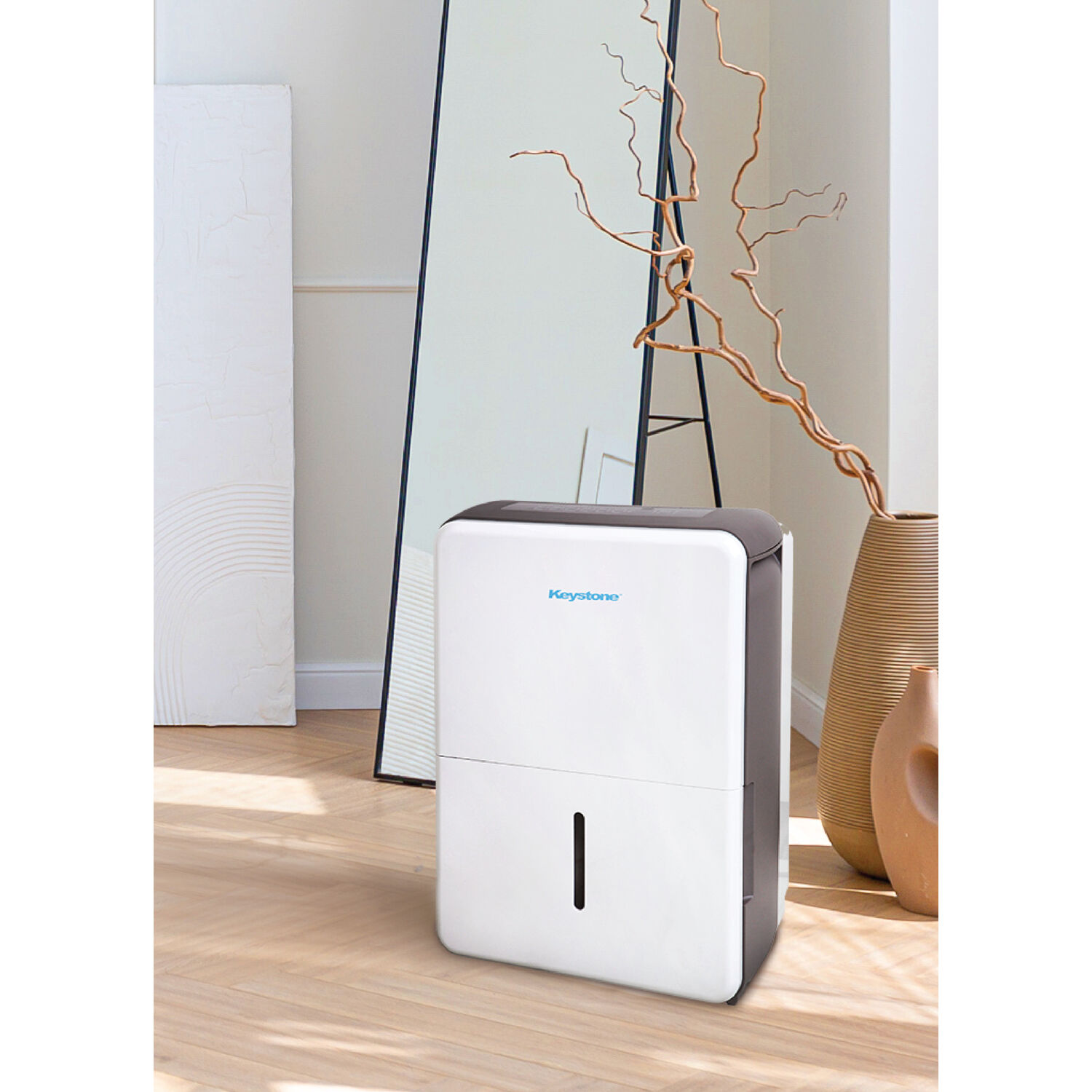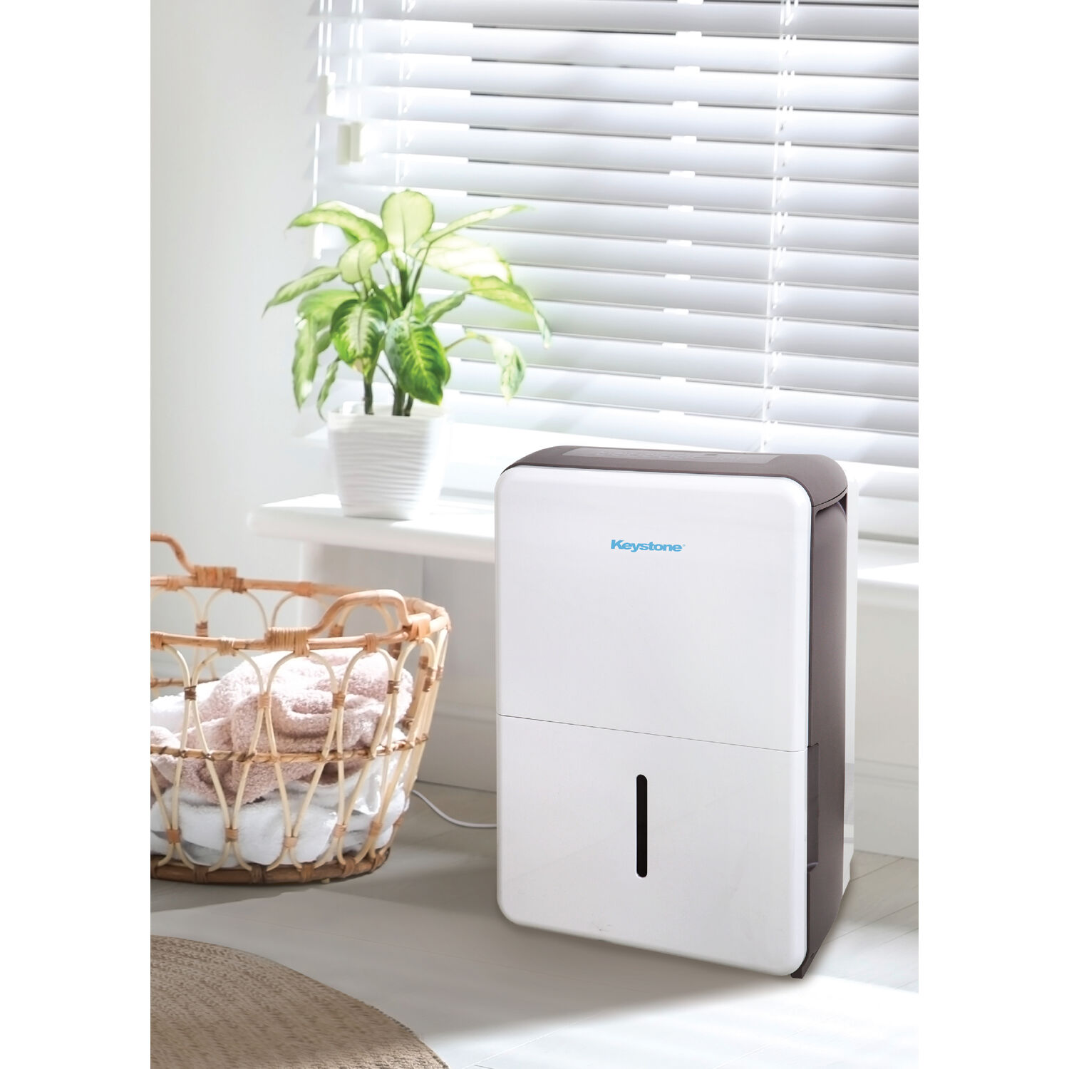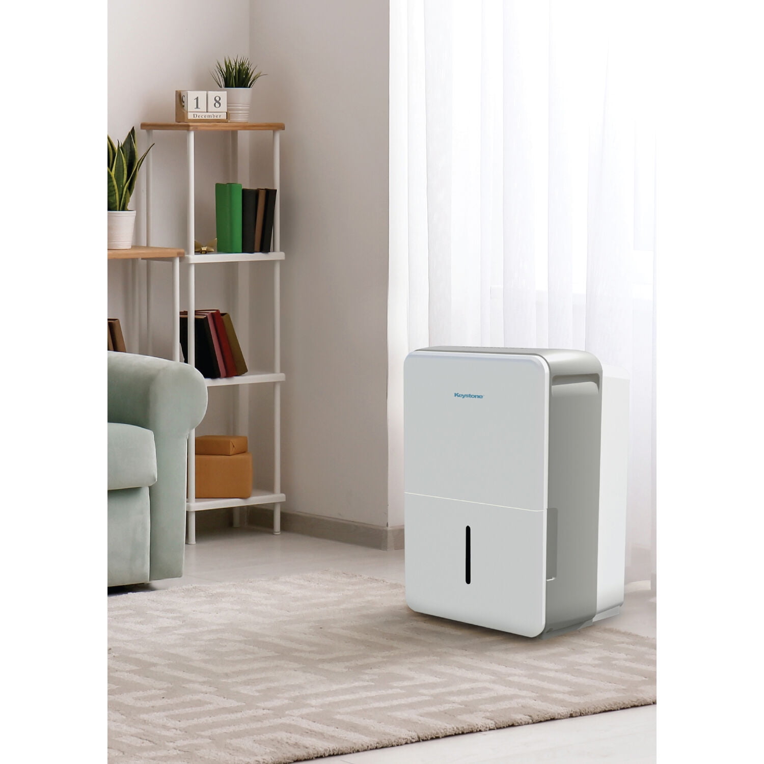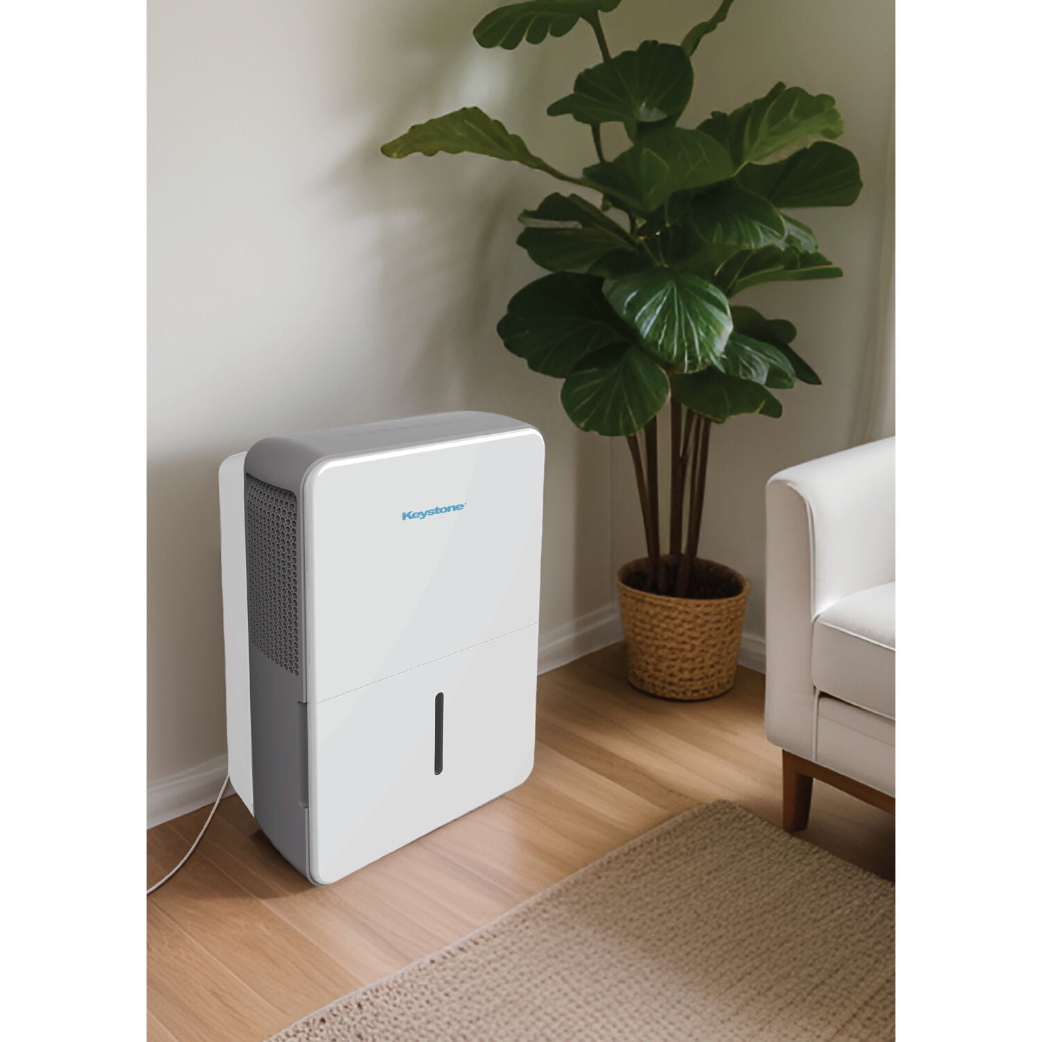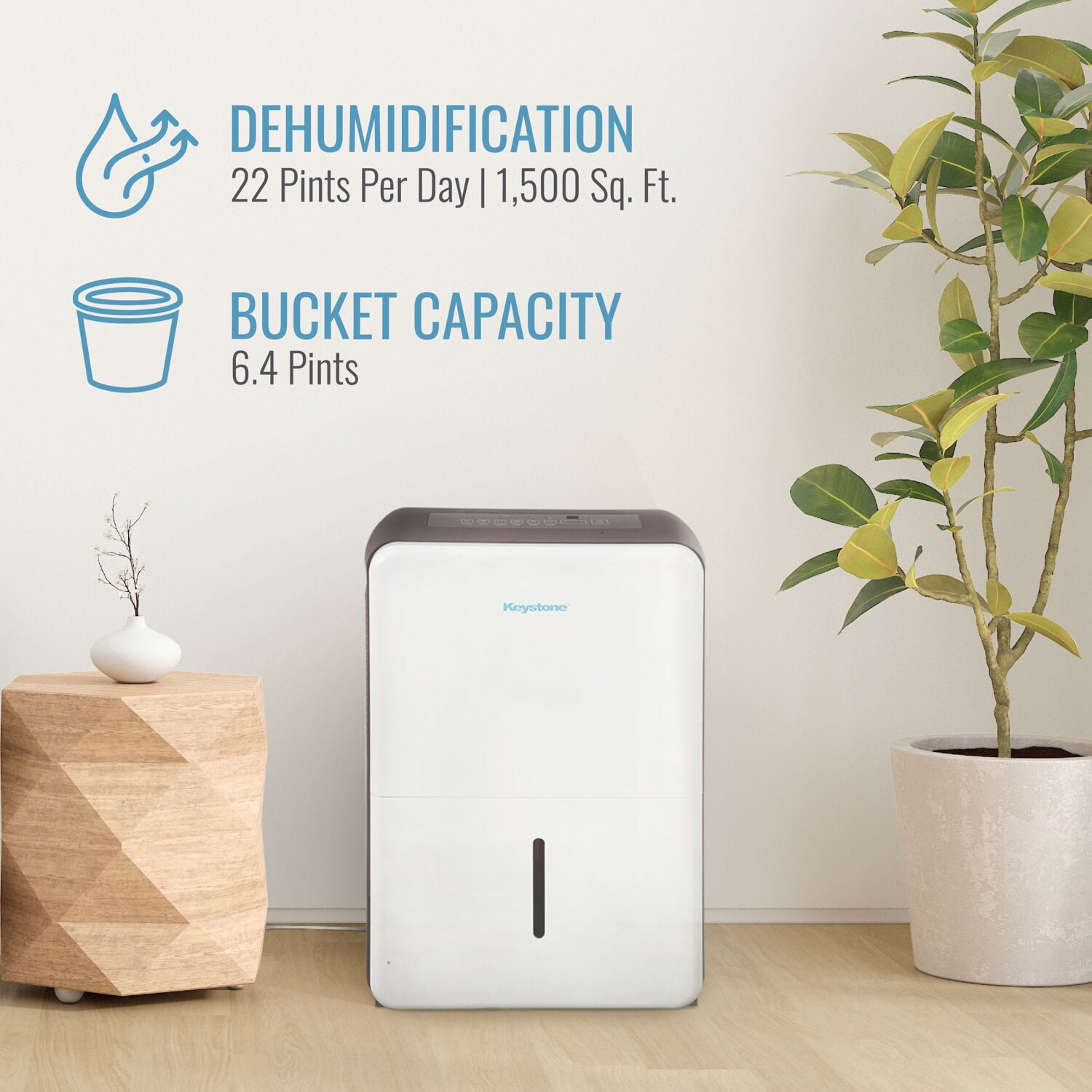 With reliable dehumidifier units, Keystone produces consistent humidity levels to keep you comfortable, even on the muggiest days. This Energy Star dehumidifier can effectively remove up to 22 pints of moisture a day to improve air quality, reduce humidity, odor and damp areas in rooms up to 1500 square feet, which is perfect for use in basements, garages, living rooms, and more. Settings include normal, turbo, auto-defrost, and auto-restart which can be adjusted using the the electronic controls on the unit’s LED display. This unit features a convenient .8-gallon water tank with Full Bucket alert and auto shut-off to prevent spills and overflowing. You’ll know when it’s time to easily remove and clean the mesh filter with the Check Filter alert. 4 omni-directional caster wheels allow for easy portability so you can move the dehumidifier quickly whenever necessary. Keystone not only provides a 1-year warranty, but ensures that you stay comfortable at a cost-conscious price.