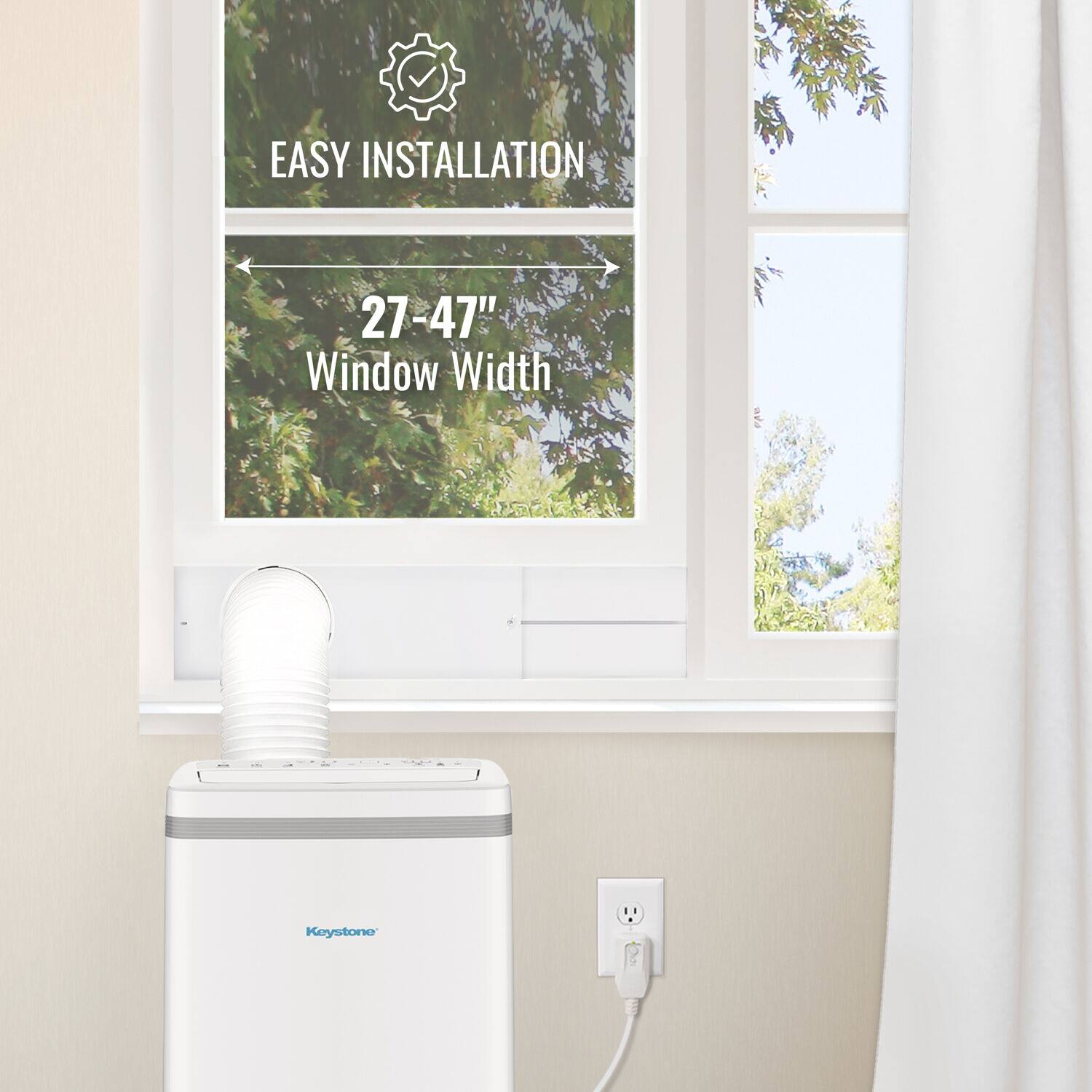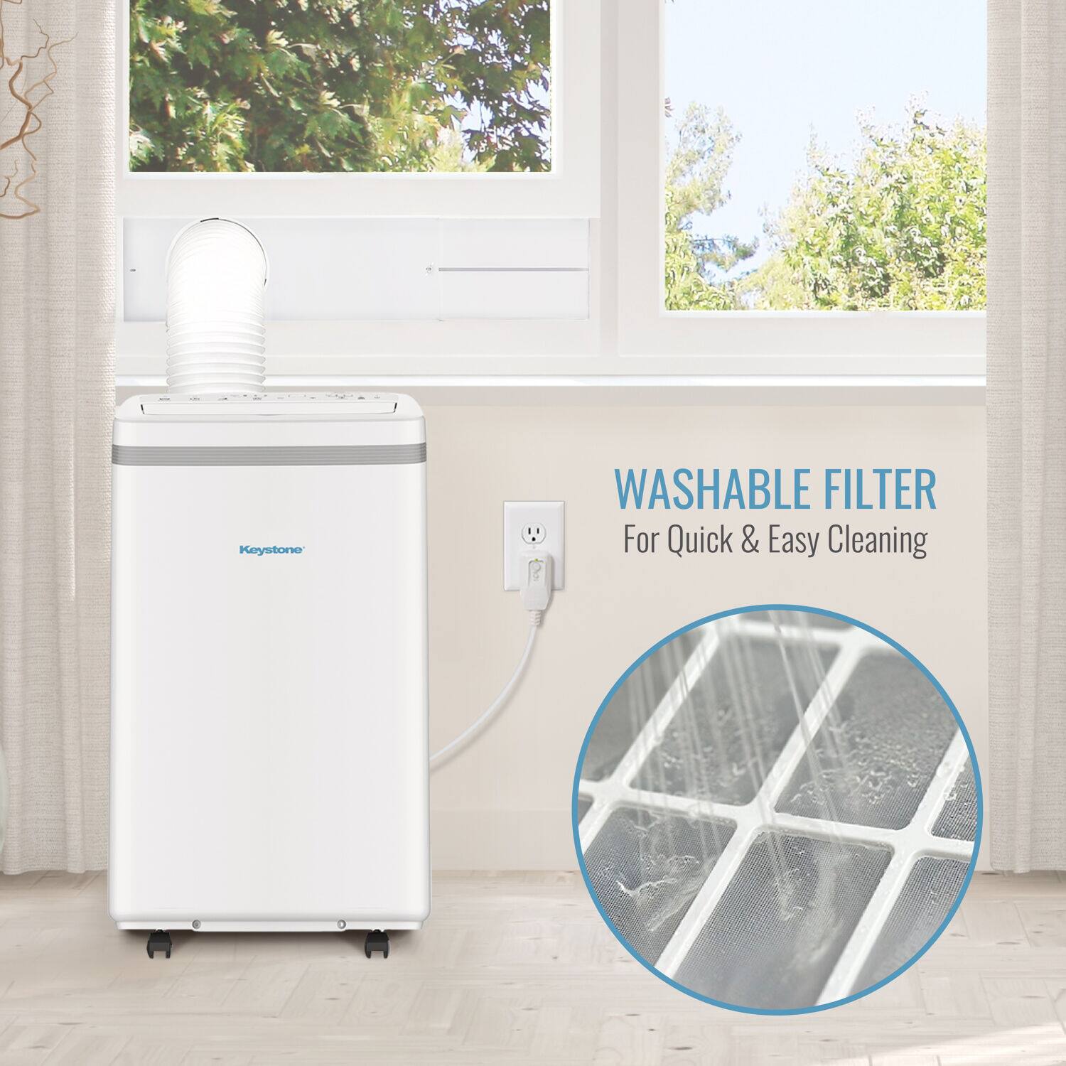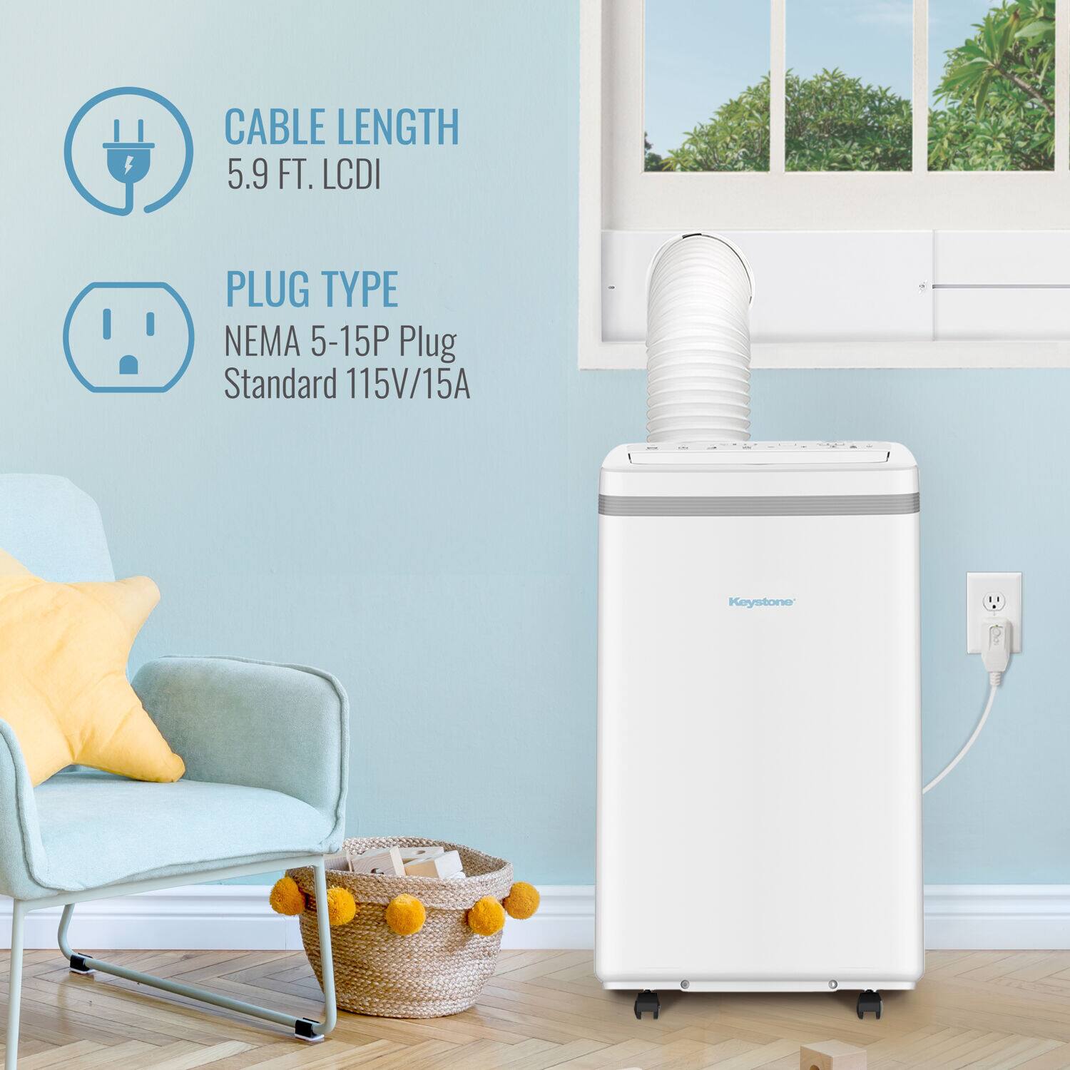 Stay cool and comfortable with Keystone’s top-rated portable AC unit. This windowless portable air conditioner boasts 13,000 BTU ASHRAE / 8,000 BTU DOE cooling power, perfect for spaces up to 450 square feet. Its dehumidification capability of 2.9 pints per hour ensures a cool and dry environment all day long. Plus, with 13,000 BTU ASHRAE / 8,000 BTU DOE of supplemental heating, this portable air conditioner is your go-to solution for both hot and cold days. Ideal for rooms such as apartments and bedrooms, this best portable air conditioner offers versatile cooling and heating options to keep you comfortable year-round. Easy to move with side handles and caster wheels, this portable AC unit also includes energy-saving features like an energy saver mode and a programmable 24-hour timer. Control your comfort from anywhere with the included remote. Trust Keystone for quality and affordability, backed by a 1-year warranty.