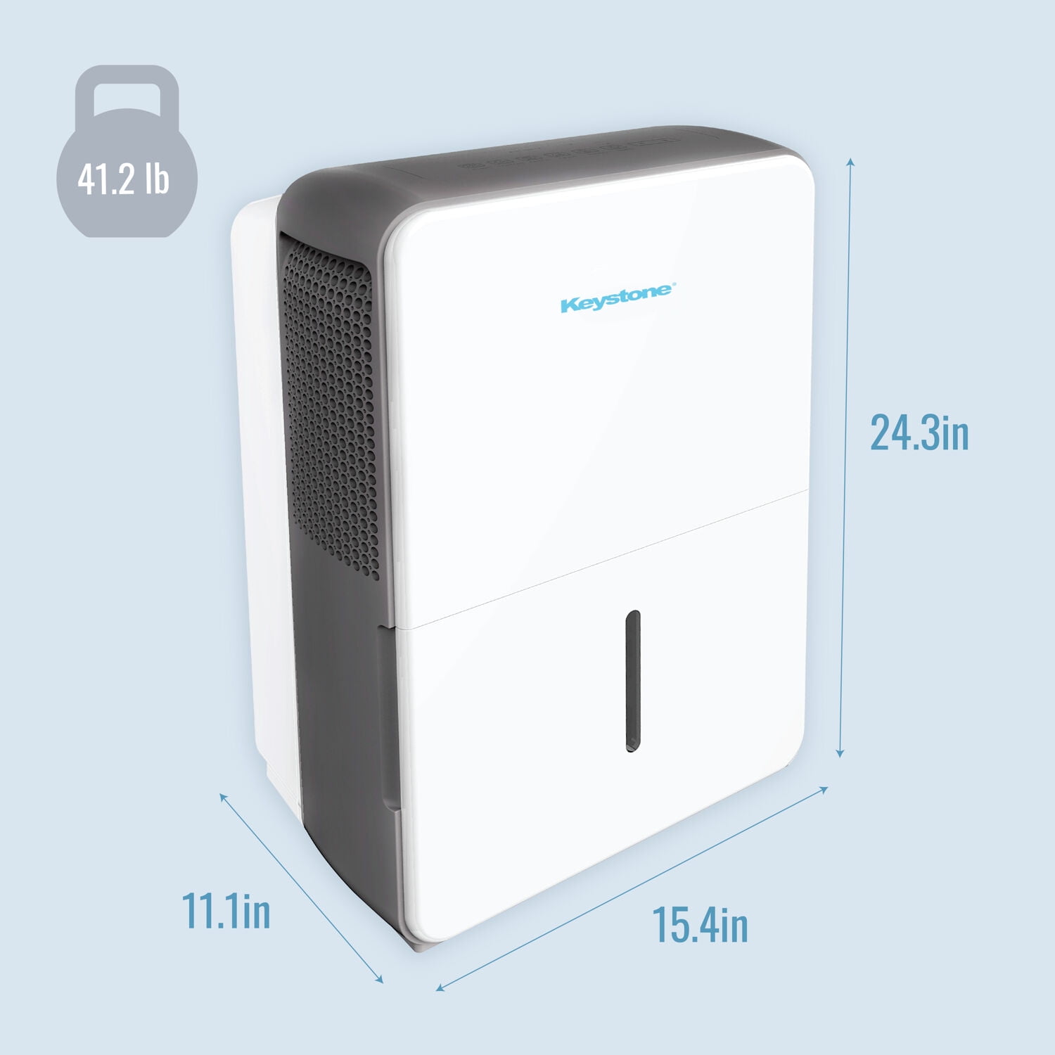 With reliable dehumidifier units, Keystone produces consistent humidity levels to keep you comfortable, even on the muggiest days. This Energy Star dehumidifier can effectively remove up to 50 pints of moisture a day to improve air quality, reduce humidity, odor and damp areas in rooms up to 4500 square feet, which is perfect for use in basements, garages, living rooms, and more. Settings include normal, turbo, auto-defrost, and auto-restart which can be adjusted using the the electronic controls on the unit’s LED display. This unit features a convenient 1.8-gallon water tank with Full Bucket alert and auto shut-off to prevent spills and overflowing. You’ll know when it’s time to easily remove and clean the mesh filter with the Check Filter alert. 4 omni-directional caster wheels allow for easy portability so you can move the dehumidifier quickly whenever necessary. Keystone not only provides a 1-year warranty, but ensures that you stay comfortable at a cost-conscious price.