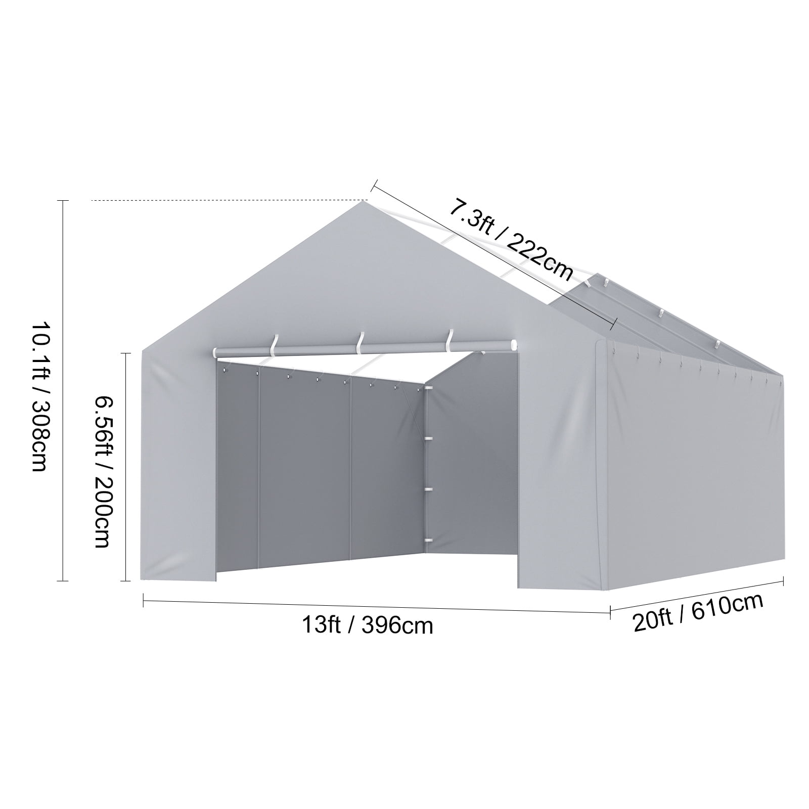 KFFKFF 13 x 20 Feet Carport Replacement Canopy Car Side Wall Shelter Tent Gray