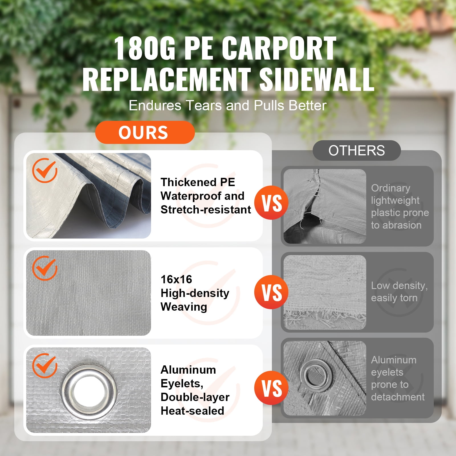 13’x20′ Practical Size: This side cover features a 4-piece front door with double zipper and is designed to replace the side canopy fabric on the 13’x20′ garage frame. Spacious and well-sized, comfortable (side compartment blanket only, no furniture). Durability: Made of woven PE plastic fabric with a 16×16 pattern, this fabric is thick, waterproof and tear resistant. Two heat seals ensure durability, while the reinforced square frame and cross-stitched Velcro on the sides increase strength and service life. Waterproof and UV Resistant: With PU+ UV resistant coating on both sides, the fabric has excellent moisture absorption and resistance to UV50+ UV rays, making it reliable for use in all weather conditions. Easy Installation: With an elastic ball elastic for securing through an aluminum cable loop and Velcro for side fastening, installation is simple and tool-free. General Application: This decorative fabric is versatile and is ideal for replacing garage side panels, installing temporary garages and parking various vehicles. It can also be used for parties, weddings, creating shaded areas, and more creative uses just waiting to be discovered!