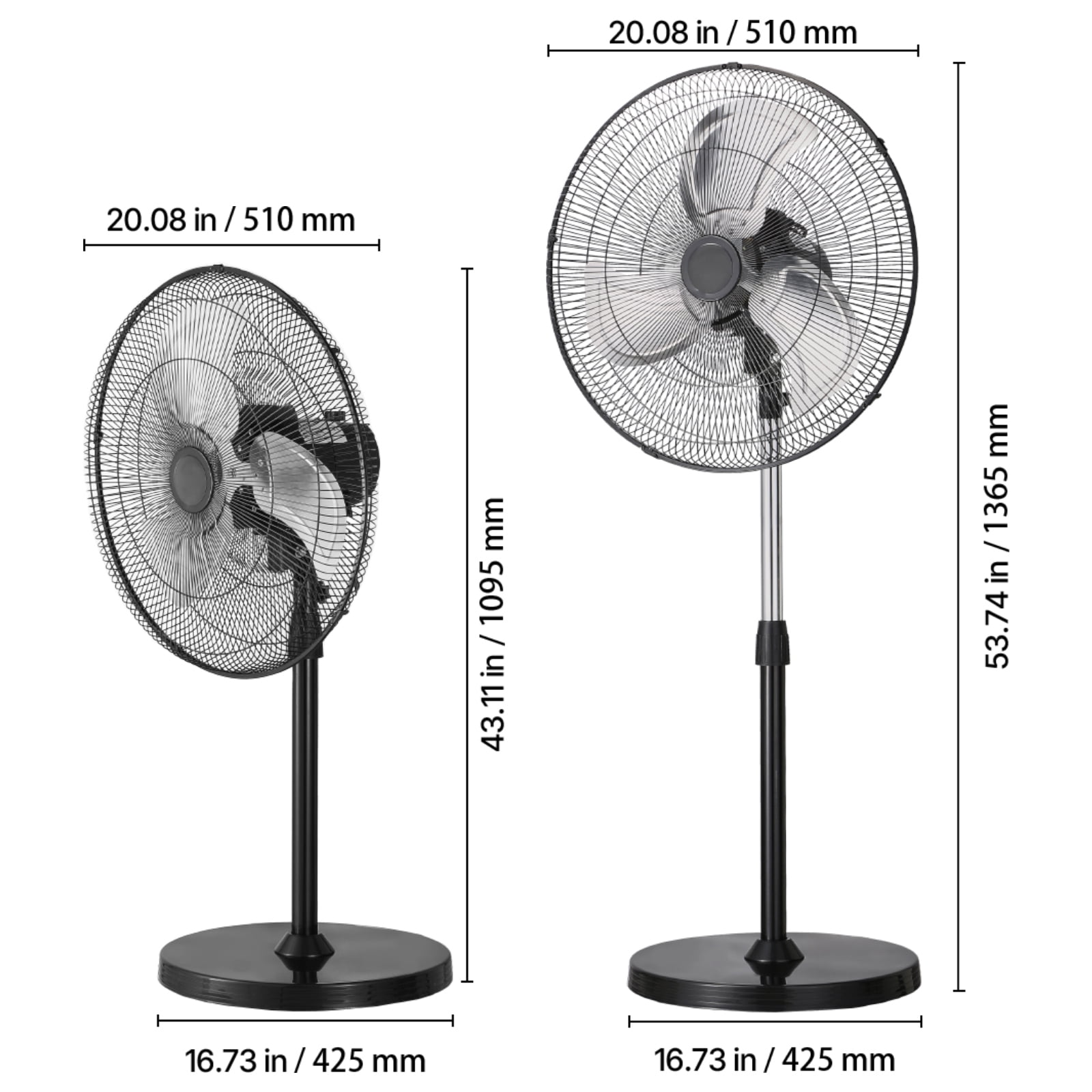 Product Description KFFKFF Oscillating Standing Fan Experience the ultimate cooling comfort with our KFFKFF Oscillating Standing Fan. Crafted with a durable metal frame and a reliable base, this fan guarantees stability and eliminates any concerns of tipping over. The powerful 3-speed motor operates quietly, allowing you to enjoy a peaceful environment. With the flexibility of adjusting the height and oscillation angle, you can customize the airflow to suit your preferences. The fan is designed with a protective mesh cover, ensuring safety while providing optimal cooling during the hot summer months. Stay cool and comfortable with our KFFKFF Oscillating Standing Fan. Experience a Cool and Comfortable Environment Looking to beat the heat and create a pleasant indoor atmosphere? Opt for our standing ventilador and instantly feel the refreshing breeze. With its high-speed airflow and adjustable angles, you can enjoy a revitalizing experience in every corner of your space. Customizable Angles and Height Whether you’re working at a higher or lower level, or simply relaxing on the couch while watching movies, effortlessly adjust the vertical and horizontal angles, as well as the height of our room fan, to achieve your desired level of comfort. Robust and Reliable Structure Crafted with a durable metal frame, our bedroom fan ensures a steady and consistent cool breeze even during extended periods of high-speed operation. The sturdy base minimizes vibrations and reduces the risk of tipping over. Versatile Cooling Solution This pedestal fan is lightweight and easy to move, allowing you to bring a refreshing breeze to any space. Whether it’s your bedroom, living room, office, or warehouse, enjoy a revitalizing airflow wherever you go. Effortless Maintenance For regular maintenance, simply switch off the power and clean the fan with a damp cloth or mild soapy water. After cleaning, wipe it dry with a cloth or let it air dry naturally for hassle-free maintenance. Powerful Airflow Across Long Distances Equipped with a high-performance motor, our room fan delivers a strong and effective airflow even over large areas. Say goodbye to inefficient cooling in spacious workspaces—this fan ensures cool comfort no matter where you need it. Specifications Item Model Number: BT-HIF18B Product Dimensions (Lowest): 20.08 x 16.73 x 43.11 / 510 x 425 x 1095 mm Product Dimensions (Highest): 20.08 x 16.73 x 53.74 inch / 510 x 425 x 1365 mm Material: Iron, Cold-Rolled Panel, PP Color: Black Net Weight: 18.74 lbs / 8.5 kg Package Content User Manual x 1 Fan Blade x 1 Front Mesh Cover x 1 Rear Cover x 1 Support Bar x 1 Base x 1 L-Bolt x 1 Washer x 1 Head x 1