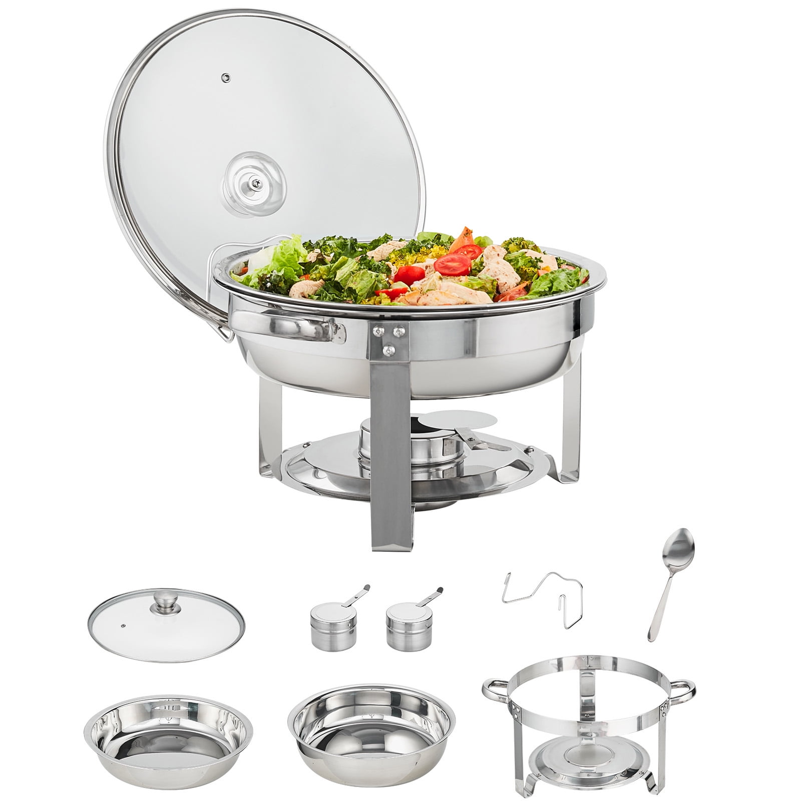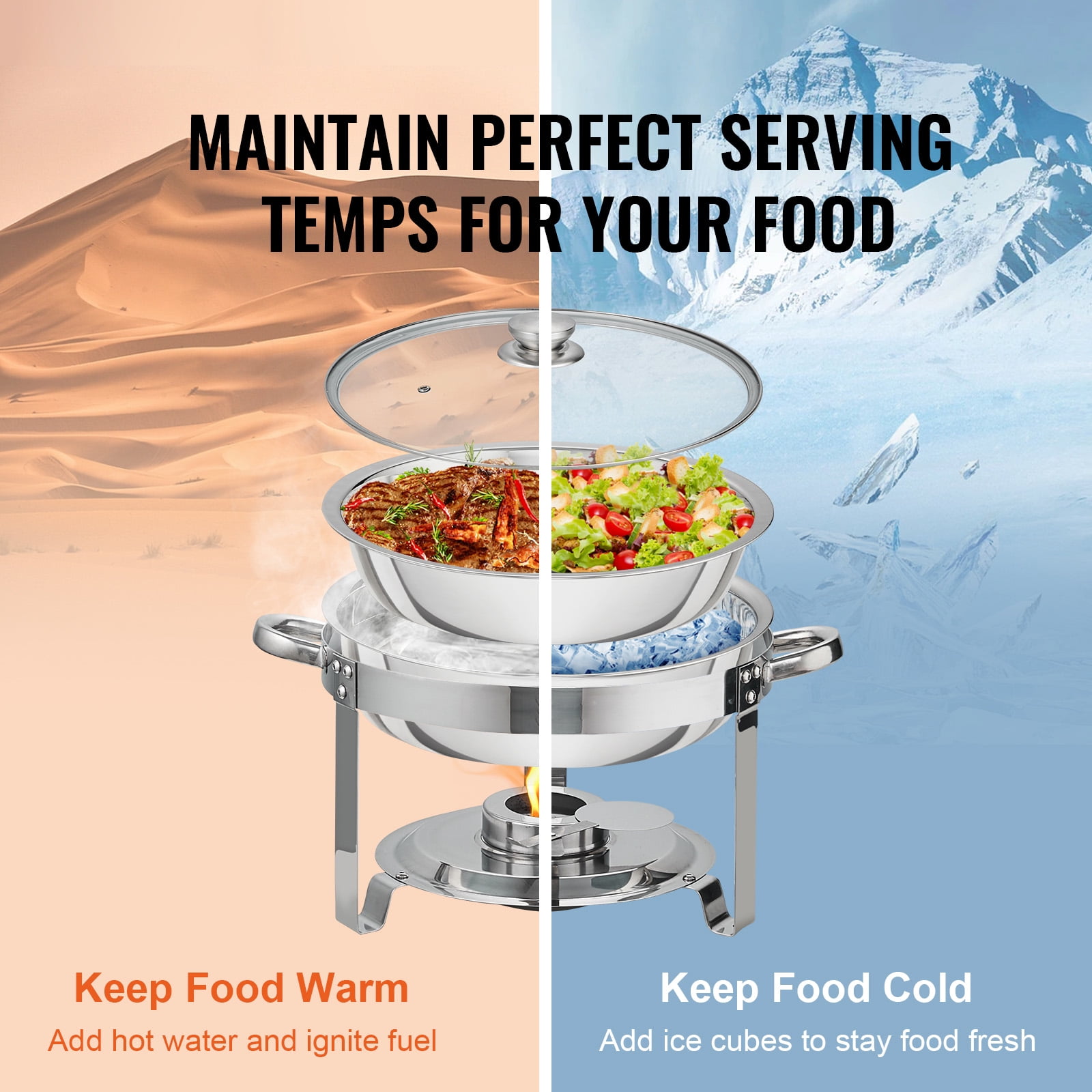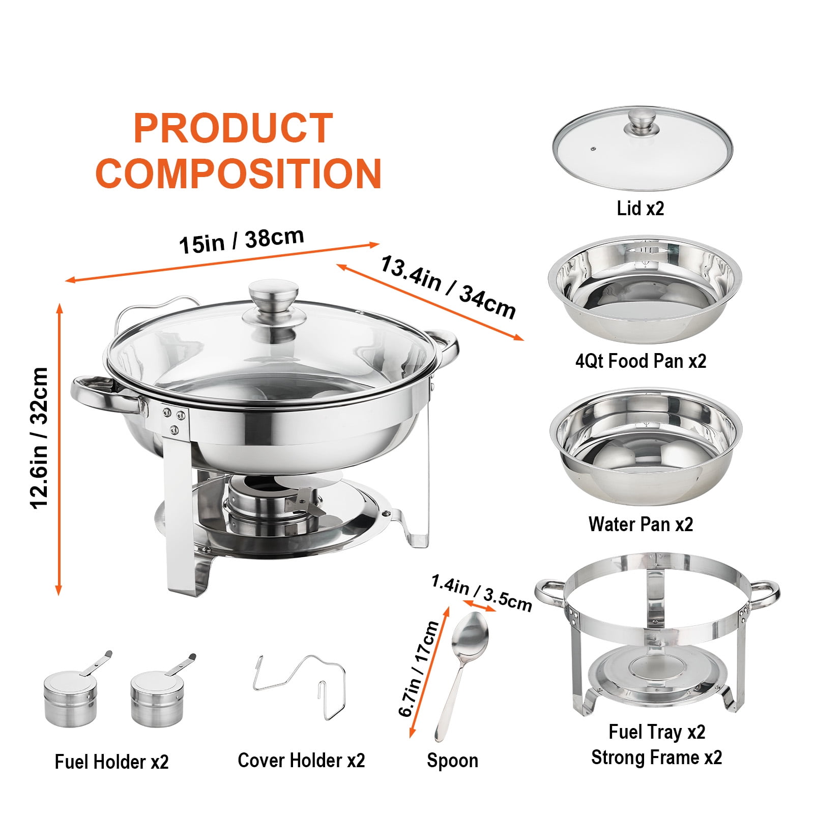 KFFKFF 2-Pack Round Chafing Dish Set with Full-Size 4Qt Pan Glass Lid Fuel Holder