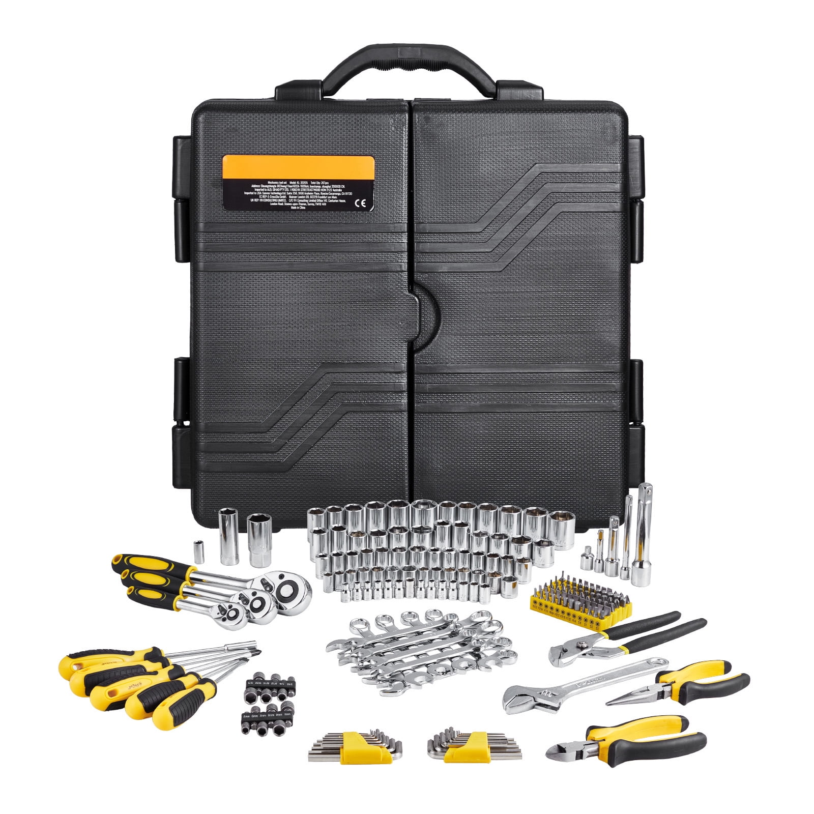 Versatile Mechanics Tool Set: This comprehensive 207-piece tool kit includes a wide range of SAE and metric drive sockets, ratchet handles, hex wrenches, extension bars, bits, screwdrivers, and pliers. It is designed to handle complex repair jobs with ease. Long-lasting Durability: Crafted from high-performance alloy steel and heat-treated, this mechanic tool kit is built to withstand wear and deformation even after years of use. The chrome-plated finish offers exceptional corrosion resistance, ensuring the tools can tackle tough tasks in harsh work environments. Efficient Ratchet Handle: Our mechanic tool set features a ratchet handle equipped with a quick-release button for effortless socket changes. The reversible design allows for easy tightening and loosening of bolts, saving you valuable time and energy. The 72-tooth ratchet ensures smooth and efficient operation. Convenient Portability: The tool box included in this set is specifically designed to keep all the tools neatly organized and well-protected. Whether you’re working on-site, in your garage, or embarking on a DIY project, you can easily carry and access your tools whenever and wherever you need them. Wide Range of Applications: This mechanics tool set is perfect for professional automotive repairs, machine maintenance, and vehicle upkeep. It is also an excellent choice for home use, garages, or DIY projects. With its versatile applications and top-notch construction, it is an essential tool set for anyone in need of reliable tools.