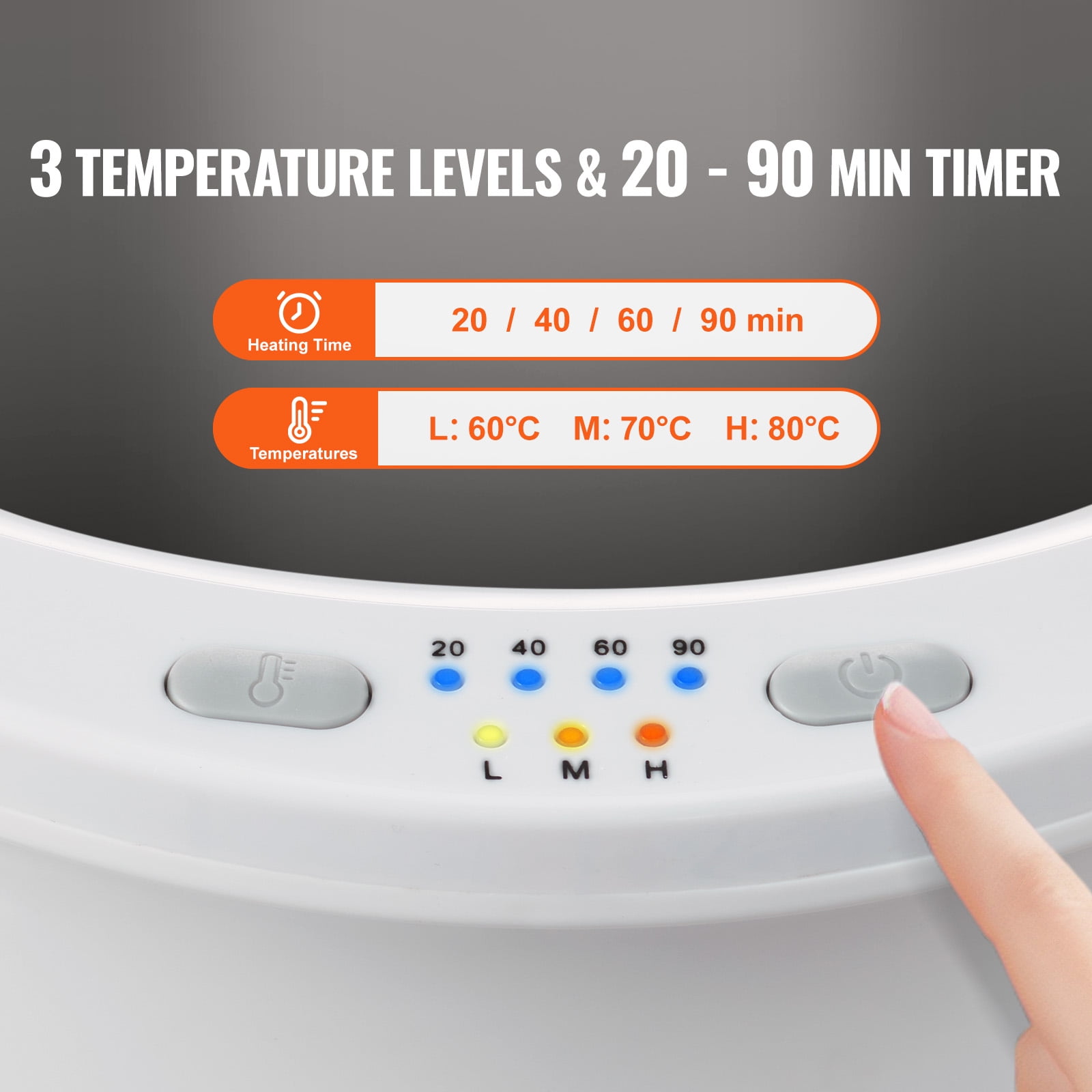 Even Heating for Rapid Warmth: Heats quickly in just 1 minute and reaches high temperatures in 6 to 10 minutes Features bottom heating wires that provide gentle, uniform warmth, eliminating uneven heating Convenient Operation: Offers 4 preset timers (20, 40, 60, or 90 minutes) and 3 temperature settings (Low: 60°C, Medium: 70°C, High: 80°C) for personalized comfort Spacious Capacity: The generous 20L capacity accommodates two oversized towels measuring 70 x 40 inches (approximately 1778 x 1016 cm), perfect for larger households Customizable Fragrance: The built-in aromatherapy section allows you to insert your favorite scented discs for a delightful fragrance experience with every use Thoughtful and Safe Gift: Ideal for anyone who enjoys warmth and comfort after a shower or bath Certified safe with ETL & FCC certifications, making it a luxurious and caring gift
