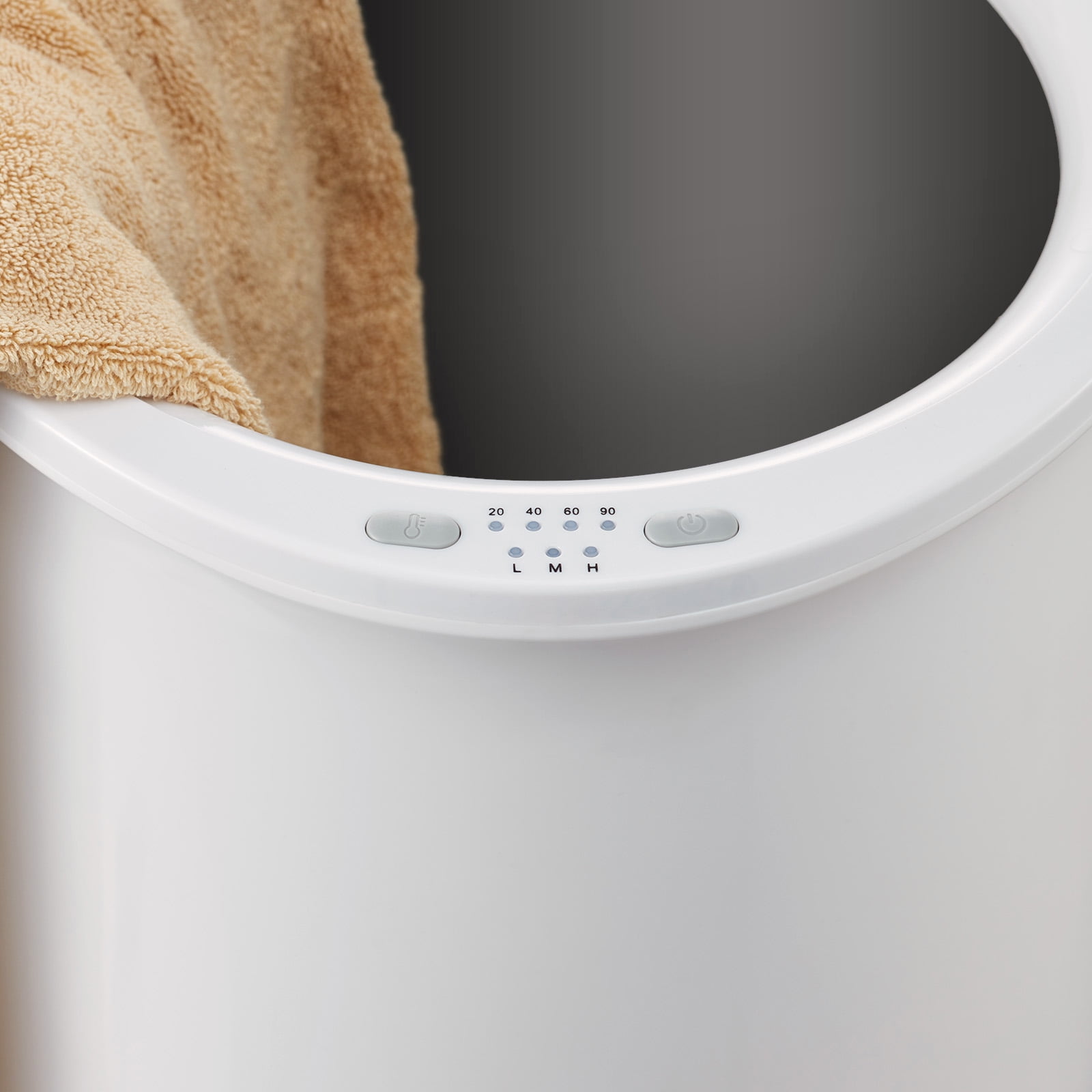 Product Description With a generous capacity of 20L and 1-minute rapid heating, this towel warmer bucket can keep your towels, bath towels, bathrobes, pajamas, etc. warm and cozy. What’s more, you can put your favorite fragrance chip into the fragrance disc holder to enjoy fragrant towels. ETL & FCC certification and overheat protection ensure the safety of you and your family. Besides, the special tree branch-shaped handle makes the towel warmer look more chic and delicate. Specifications Item Model Number: E1819Z-US Capacity: 20 L Product Dimensions: 12.99 x 12.95 x 21.25 inch/330 x 329 x 540 mm Product Weight: 7.07 lbs ? 3%/3.21 kg ? 3% Rated Power: 465 W Rated Voltage/Frequency: AC120V, 60HZ Display Mode: LED Indicator; Red Light: Internal Temp. > 50+/-10? Package Content 1 x Towel Warmer 1 x User Manual 1 x Fragrance Sachet 1 x Warning Label