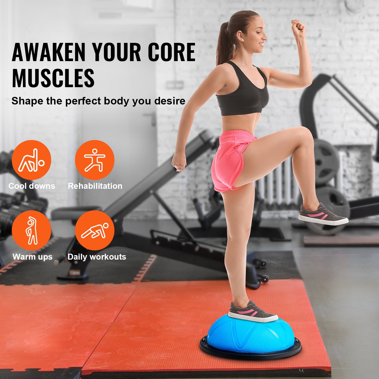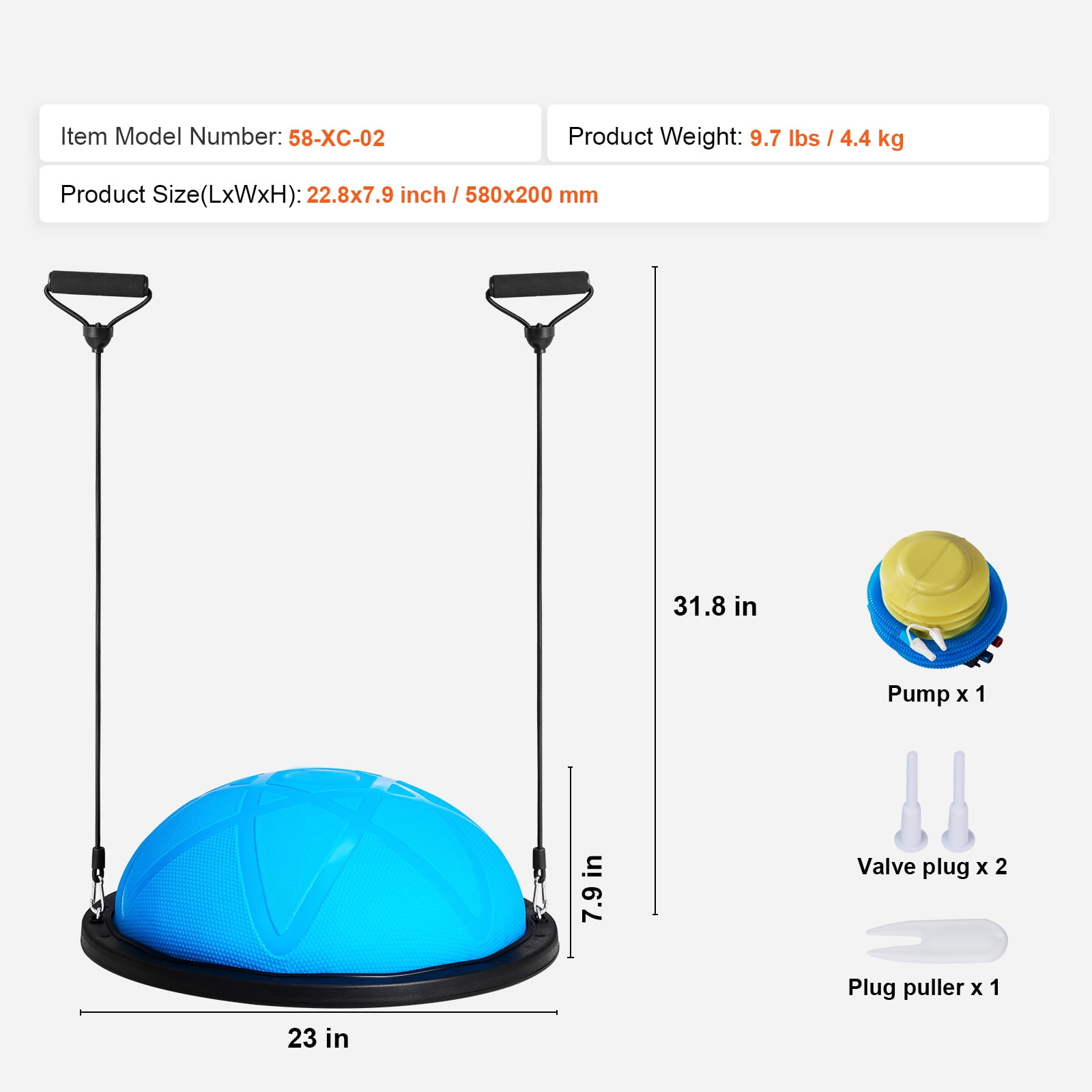 Product Description Half an exercise ball trainer Unlike any other fitness equipment, our balance training balls offer a variety of strength training methods that target every muscle in your body and support a variety of unique stretching poses, making them the perfect addition to your home gym and workout routine. Endless exercise options The balance ball is used for total body training or rehabilitation, such as core strength training, improving body balance, and muscle recovery after injury, providing unlimited possibilities for total body exercise. Multiple training methods This balance ball trainer can unlock your body’s potential and improve strength, balance and flexibility. Ideal for increasing overall vitality and maximizing training results. Durable and stable Our stability balls are made of high quality PVC material and can support 660 pounds. The large 23-inch size features a textured design to provide a comfortable, non-slip surface for your workout. Easy to inflate Installation is quick and easy. Simply plug in the pump to inflate the ball, which expands in a minute and shrinks in a few seconds. Free pump for rapid inflation. High quality air valves prevent leaks and ensure durability. Widely used This semi-fitness ball balance trainer has two handles on the bottom and can be used with a fitness rope. Ideal for a variety of workouts at home, in the gym or outdoors. Perfect for personal trainers, fitness trainers, gyms, yoga studios and sports teams. Available in a variety of colors and sizes Available in a variety of colors, textures and sizes, you can choose according to your preferences, making your daily training easy and enjoyable. Package Content 1 x Half Exercise Ball Trainer 1 x Set of Accessories