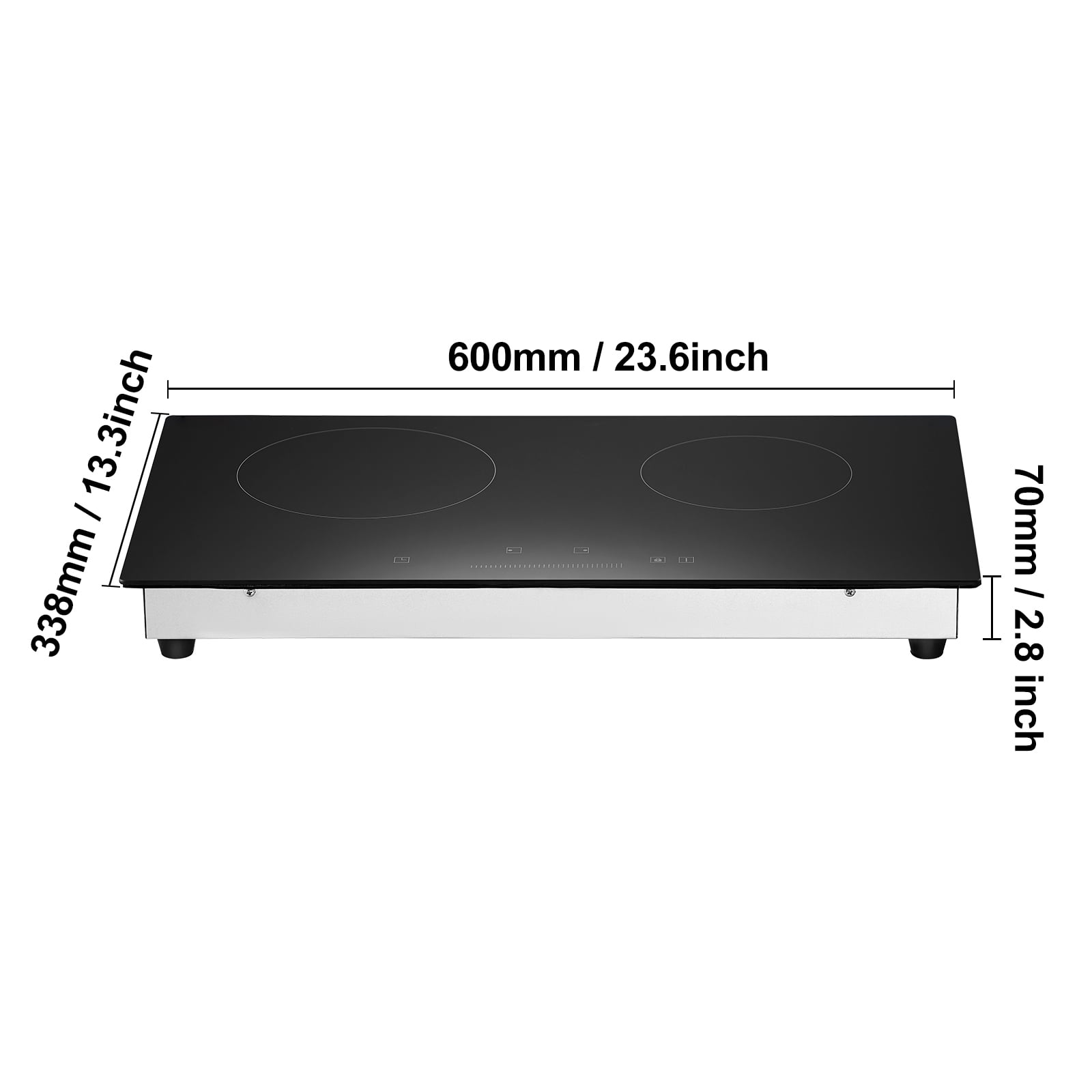 1800W Powerful Performance: With 9 power levels, the KFFKFF electric cooktop is perfect for various cooking tasks. Its 1000W + 800W high power ensures fast and even heating, allowing you to prepare meals quickly. Intuitive Touch Control: Easily adjust the temperature with a single swipe on the highly sensitive touch control panel. Each touchscreen switch provides independent temperature control. The ceramic cooktop also includes a convenient timer and pause button for added kitchen flexibility. Efficient Multi-Pot Cooking: Compatible with a wide range of high-temperature cookware, such as copper pots, cast iron skillets, and stainless steel pots, the KFFKFF electric cooktop features 2 burners for efficient simultaneous cooking. Its design minimizes heat loss and maximizes heating efficiency. Enhanced Safety Features: Our electric radiant heat cooktops have multiple protection features that prioritize safety. It automatically shuts off in the event of an overflow, has an overheat protection limit of 600°C/1112°F, warns of residual heat to prevent burns, and has a child lock to prevent accidental contact. In addition, it emits no high-frequency radiation. Space-Saving Built-In Design: The 24-inch KFFKFF electric cooktop is designed to save valuable kitchen space. It is compatible with a 120V, 60Hz voltage. The installation requires a workbench cutout of 580×320 mm / 22.8×12.6 inch.