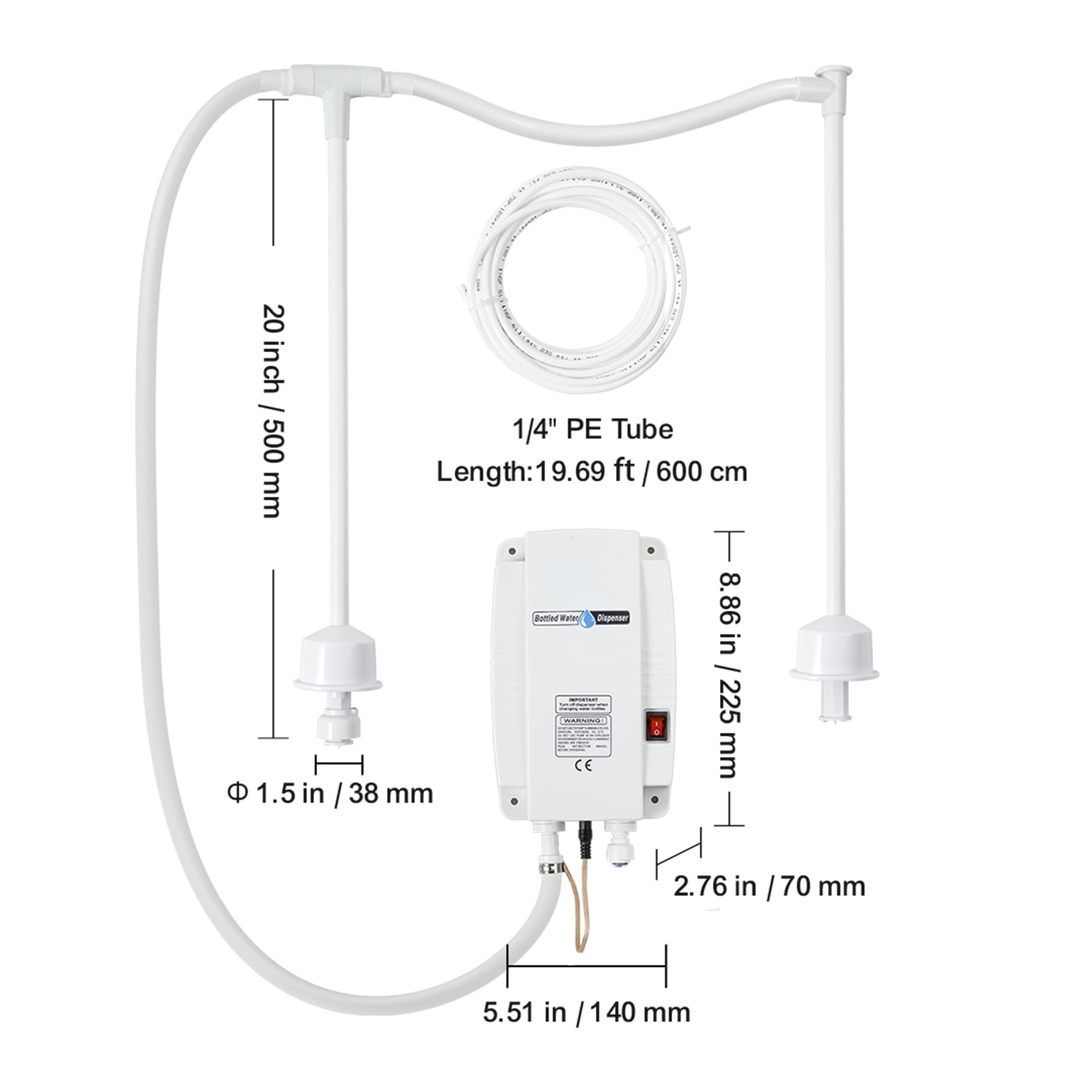 Wide Voltage Dual-Tube Design: This bottled water dispenser pump system features a wide voltage dual-tube bottled water pump system, suitable for 5-gallon bottled water, delivering drinking water under pressure. It comes with 2 inlet pipes, effectively extending the water usage cycle and reducing the frequency of water changes. Powered by a 100-240V adapter, the wide voltage design eliminates concerns about voltage mismatch, easily adapting to various usage scenarios. Superior Performance: This bottled water dispenser pump boasts powerful performance, with a working pressure range of 40-60 PSI (2.8-4.1 bar) and a water outlet flow rate of 0.67GPM (2.5L/min), ensuring quick and stable provision of ample drinking water, meeting your drinking water needs anytime, anywhere. Wide Application: This dispensing system is highly versatile, compatible with bottled water, and can serve as a source of clean water for faucets, refrigerators, ice makers, and coffee machines, enhancing the quality of life by providing clean and safe drinking water. Dual Switch Protection: Equipped with dual safety protection of buoyancy switch and water pressure switch; the buoyancy switch automatically detects water levels and stops operation when the bottled water is empty; the water pressure switch can realize the automatic water supply by opening the faucet, without repeatedly turning on the machine, effectively ensuring safe usage. Illuminated Switch Design: The water pump switch of this automatic electric water dispenser features an illumination function. In dark or low-light environments, the illumination function of the switch allows clear visibility of the switch position and status, facilitating easy operation.