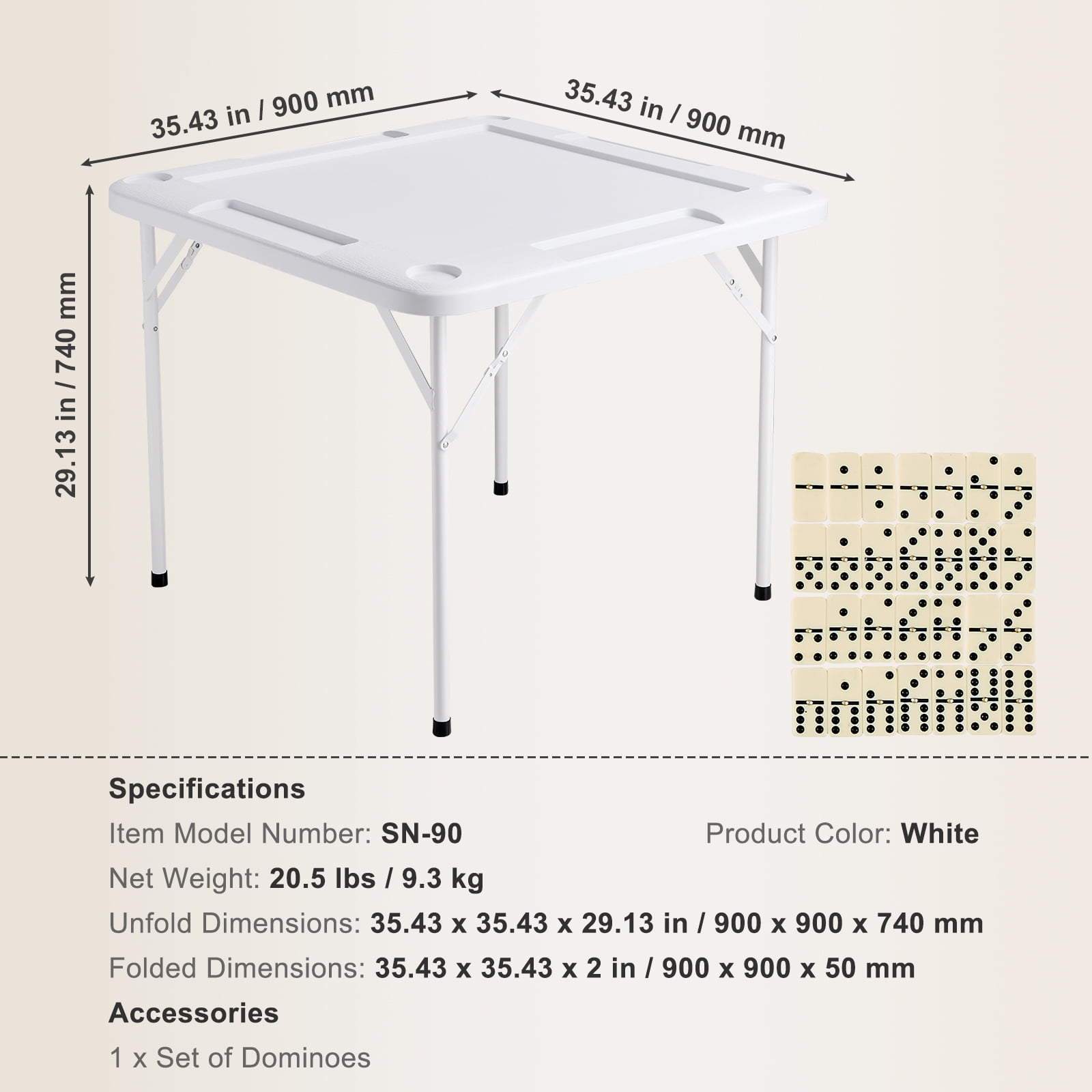 Product Description KFFKFF folding mahjong table Spice up your party with the KFFKFF folding mahjong table, perfect for enjoying leisure time with family and friends. With its cup, you can keep your drink near you. In addition, the smart tray allows you to keep your phone, chips and cards organized and easy to retrieve and place. Easy folding The KFFKFF folding domino table folds into a compact size, perfect for meeting your storage needs without taking up too much space. Tape it up and store it next to stairs, in a corner or in a drawer so you don’t have to carry it around when you need it. General use Invite your friends to participate in various activities such as mahjong, card games, dominoes and Lego puzzles. Use it as a computer desk or coffee table in leisure time to maximize space utilization. Very stable Perfect features: Our 4-player square table with thick HDPE material, high-quality stainless steel tubes and non-slip feet provides a solid, safe foundation for confident play. The perfect gift choice Non-slip, waterproof and easy to clean, our folding game puzzle tables are perfect for both indoor and outdoor activities, providing endless relaxation and entertainment. It also allows for gift-giving, thereby inspiring quality materials that provide a comfortable user experience. Easy to clean Made of high-quality materials, it is waterproof, dust-proof and easy to clean, bringing beauty to your daily life. anthoyl With plenty of space to spread out your tiles and cards, you can immerse yourself in the game without feeling crowded or clogged. Specifications Item Model Number: SN-90 Product Color: White Net Weight: 20.5 lbs / 9.3 kg Unfold Dimensions: 35.43 x 35.43 x 29.13 in / 900 x 900 x 740 mm Folded Dimensions: 35.43 x 35.43 x 2 in / 900 x 900 x 50 mm Package Content 1 x Set of Dominoes