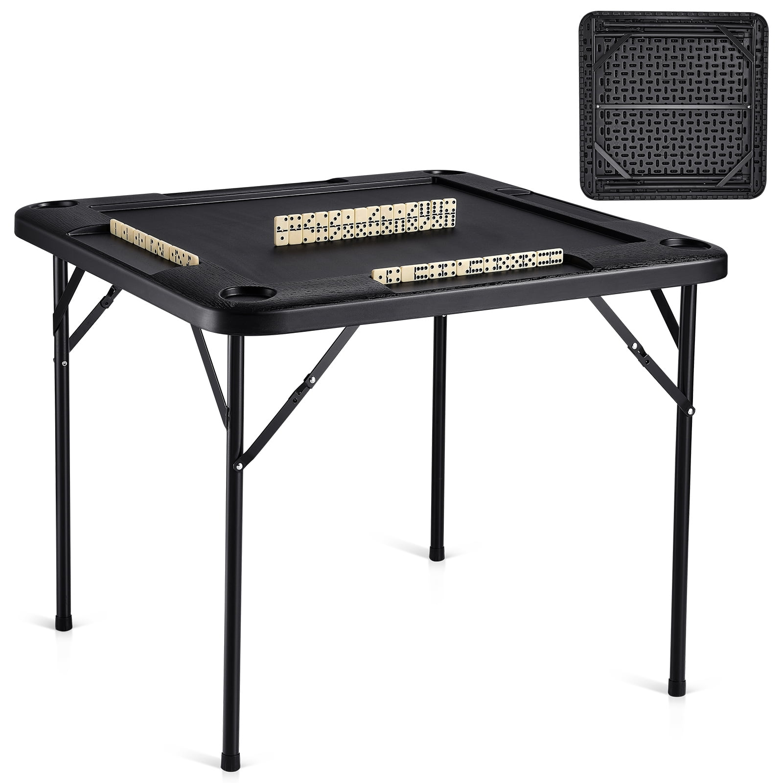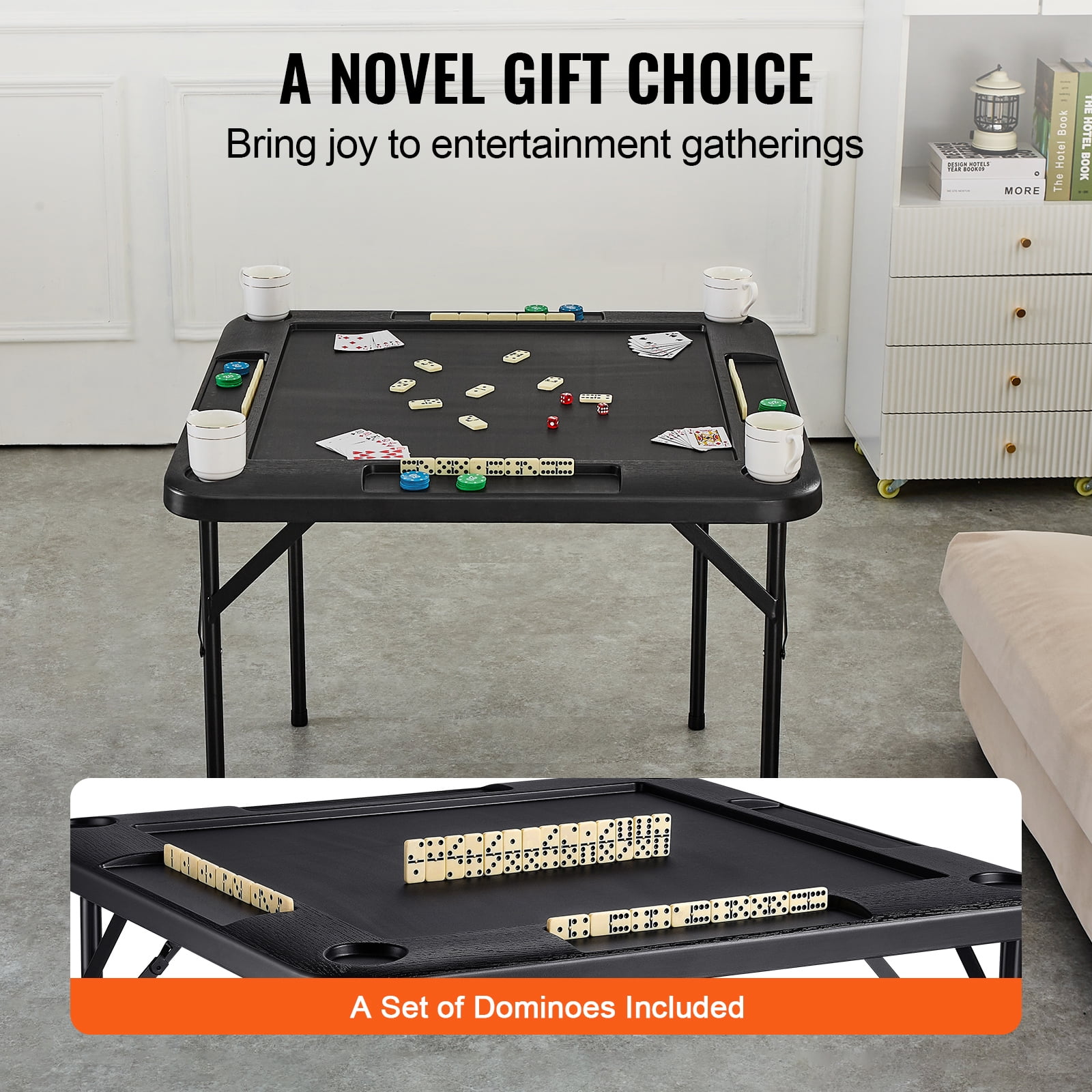 KFFKFF 35.4” Portable Domino Game Table Foldable Multifunctional Square Game Table 4 Cup Holders/4 Chip Trays/Dominoes