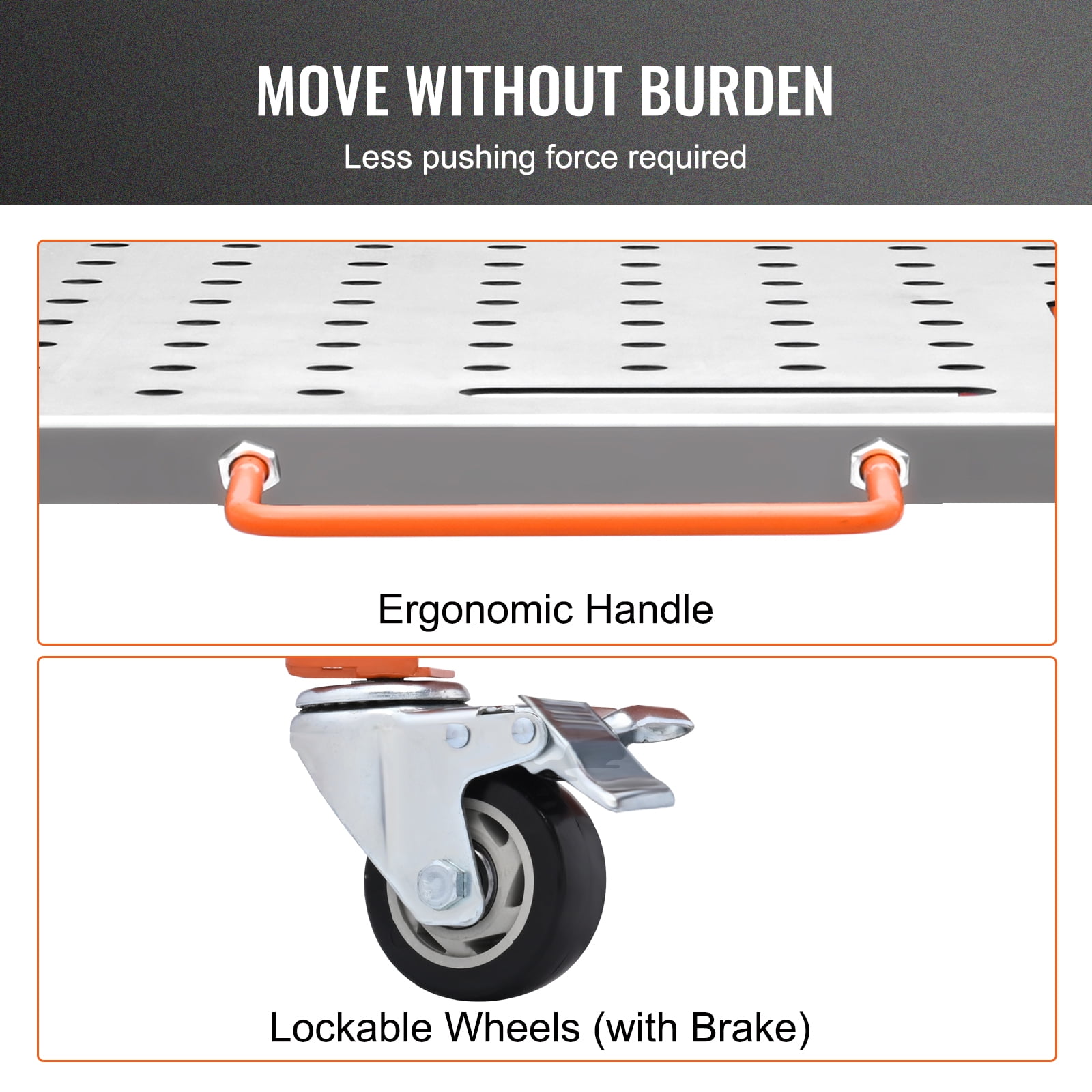 KFFKFF 36×18-inch Steel Welding Table, Supports up to 1200lbs, Mobile Workbench with Brake-Enabled Locking Casters, Includes 4 Tool Slots, 5/8-inch Fixture Holes & Tool Tray