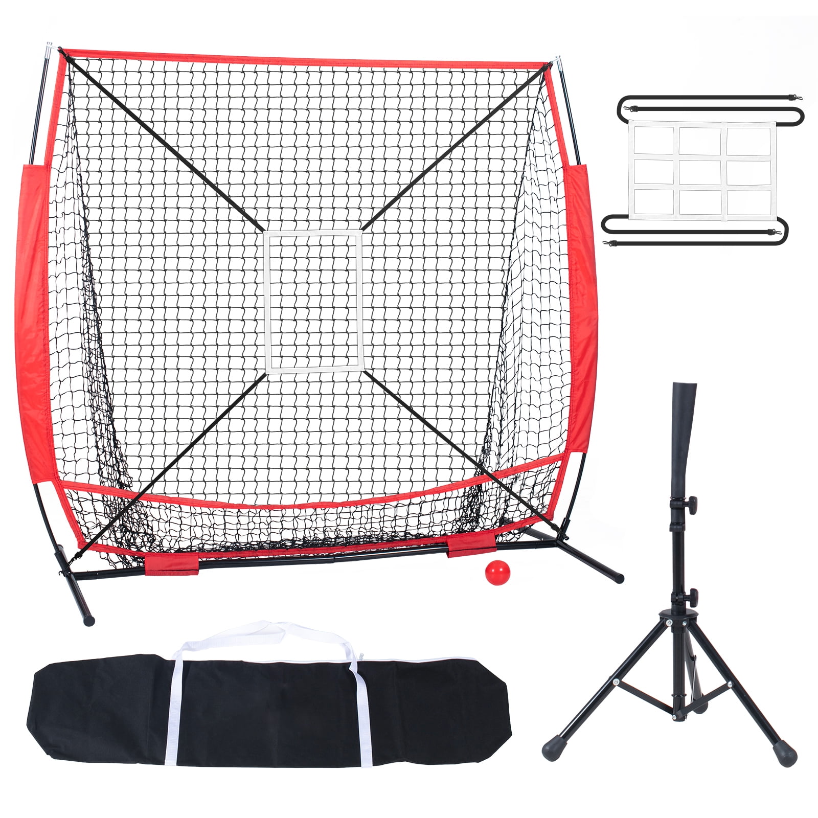 KFFKFF 5×5 FT Portable Baseball Softball Practice Net Set Hitting Batting Multiple Accessories including Bag & Sand-Filled Ball &Square/nine-grid Target Frame &Batting Tee