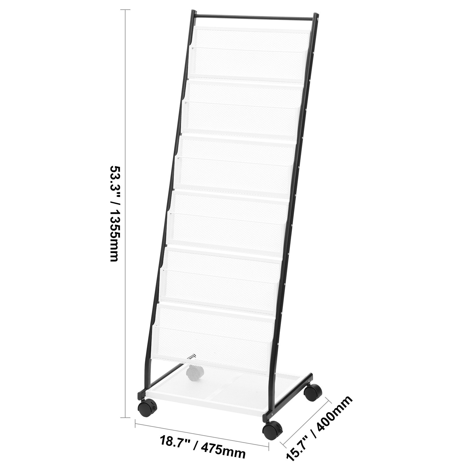 Quality Craftsmanship, Lasting Durability: KFFKFF 6 pocket brochure display stands are precision crafted and subjected to a high temperature paint process to achieve a smooth and durable surface. No longer worry about deformation – this document display stand stands the test of time. Plenty of Room to Organize: Our Document rack Magazine rack features a spacious 6-level display grid that can hold 2 x A4 magazines, providing enough space to neatly organize newspapers, brochures, magazines, literature and more. Keep your brochures clean, organized, and easily accessible. Keep it Tidy, Show it Clearly: Each shelf is designed with a grid pattern to optimize airflow, ensure proper ventilation and minimize dust buildup. This thoughtful design keeps your display stand clean and organized, prevents brochures from slipping off, and maximizes aesthetics and functionality. Effortless Mobility: This magazine catalog holder is equipped with four smoothly rolling 360° rotating wheels for easy movement. In addition, 2 lockable wheels and reliable brakes ensure that the rack is stable and secure, allowing you to place it wherever you want. Versatile and Fashionable: Our floor-to-ceiling portable document racks are easy to assemble and seamlessly integrate into a variety of environments, from offices and libraries to hotels and trade shows; This is the preferred solution for presenting magazines with a unique style.