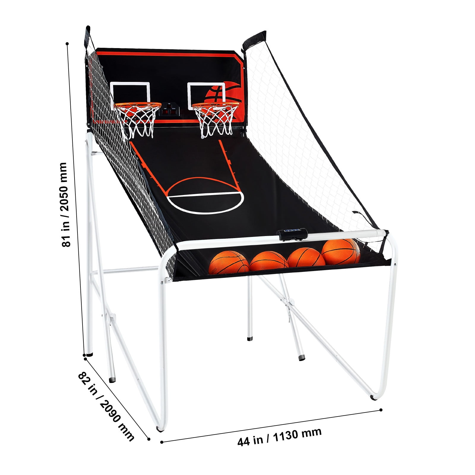 KFFKFF 7-Foot Basketball Arcade: This arcade-style basketball game is perfect for family gatherings. It features a durable steel frame and dual hoops, providing endless two-player fun. With innovative technology and competitive game options, it is the ideal gift choice. Sturdy and Long-lasting: Crafted from high-quality thickened iron tubes, this home dual shot basketball machine offers stable support. It is equipped with two types of foot pads to enhance stability. The powder coating prevents rust and chipping. The 210D Oxford fabric slide ensures durability. Exciting 8-in-1 Game: Experience the thrill of multiple game modes with dual basketball scoring boards and a game timer. Suitable for players of all ages, this game delivers an authentic arcade experience with exciting sound effects. Note: The 8-in-1 electronic counter requires 3 AA batteries (not included). Convenient and Space-saving: The foldable design allows for easy storage and transportation, saving up to 75% of space. This double shootout sport game is designed for rooms with 8-foot ceilings, ensuring optimal ball flight. Assembly requires two adults and comes with complete accessories, including 4 basketballs, 2 basketball hoops, and an air pump. Inspire Basketball Passion: This basketball hoop is the perfect gift to ignite children’s love for the sport. Whether it’s a birthday, Christmas, Thanksgiving, or any special occasion, our basketball hoop encourages active play and skill development.