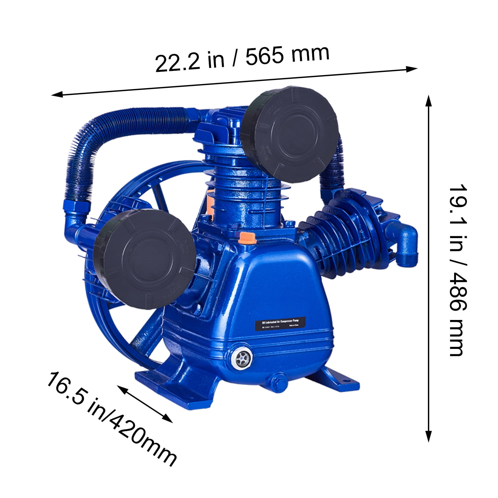 KFFKFF 10HP Air Compressor Pump Head: The KFFKFF 10HP 3-cylinder air compressor pump head offers a flow rate of 17.5 CFM @ 90 PSI, dual-stage compression, and a maximum working pressure of 185PSI. It provides a continuous and sufficient air supply for a wide range of equipment, making it ideal for tasks such as tire inflation, spray painting, woodworking, and more. (NOTE: Motor Not Included) Proven Belt-Driven Design: Our dual-stage V type pump head utilizes a proven belt-driven design to avoid bearing displacement. It ensures excellent compression and smooth running. (Installation notes: When placing the pump head, make sure the motor pulley and the belt pulley are in the same straight line. The more aligned they are, the less vibration you’ll experience.) Superior Features: This oil lubricated air compressor pump features a high-quality intake and exhaust valve design, precision cylinder, efficient heat dissipation fins, and an air filter. These features enhance stability, extend the service life of the pump, and the convenient oil observation mirror allows users to easily monitor the oil level. Durable and Efficient: The compact piston pump head is primarily made of durable cast iron, offering excellent wear resistance and minimizing the risk of damage. Coupled with its high efficiency and low energy consumption, it delivers powerful pneumatic performance while helping you save on operational costs. Wide Applications: The KFFKFF 10HP air compressor pump head finds wide applications in chemical, light industry, textile, mining, construction, home decoration, woodworking shops, auto repair, and more. It reliably delivers compressed air to meet the demands of various equipment and tools, greatly enhancing your work efficiency.