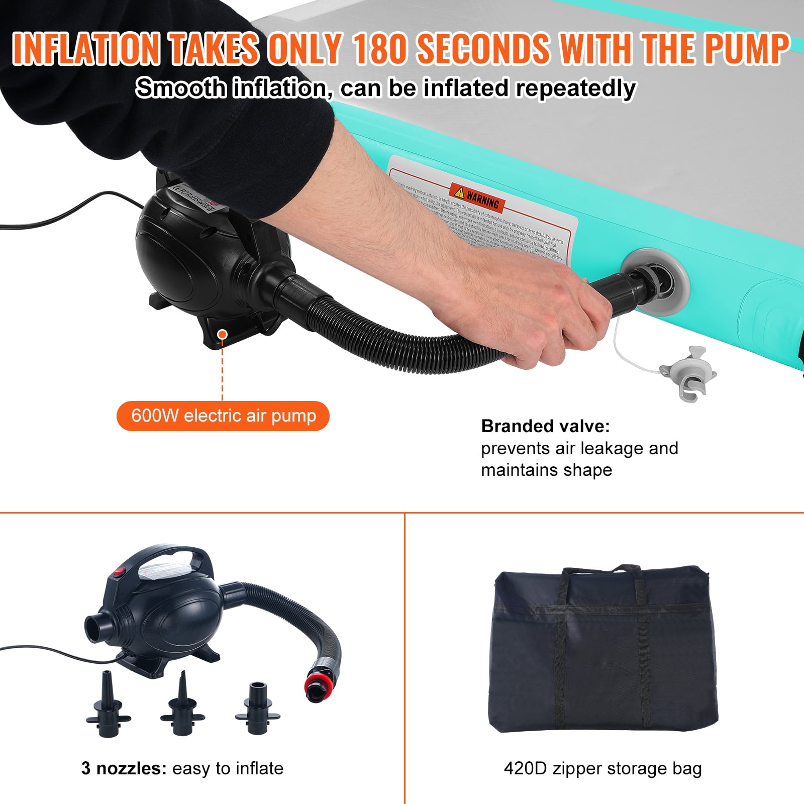 KFFKFF Air Mat Inflatable Training Tumbling 20ft with Pump Gym Gymnastics Mat