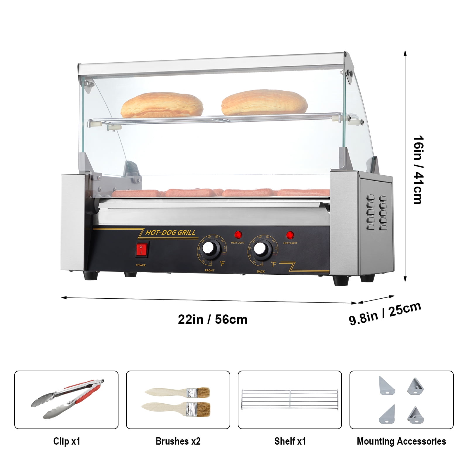 Barbecue Like Professionals: Let those dogs roll up! Our hot dog drums have the highest quality of commercial -grade stainless steel grilled racks and ETL certification. 5 non -stick pots can cook 12 hot dogs at a time. It is the first choice for food stalls, family gatherings and barbecue. Designed for various hot dogs, sausages, meatballs, etc. Double Temperature Disc: The two knobs can easily adjust the cooking temperature of the front and rear drums to 482 ° F, respectively. The left knob controls the first three rollers and the right knob controls the two roller. In this case, it allows the rear drum to cook continuously, while the front roller keeps the food heat and prepares to serve. Optional Baffle and Shelves: Are you tired of too long cooking time or complaints of customers? Okay, let’s speed up! The additional rear baffle and frame can block the dirt and keep the food warm, thereby shortening the cooking time. Their assembly and disassembly are easy, and there are clear explanations. 360 -degree Flavor: Due to the three -point chain design, the drum of this hot dog machine can rotate 360 ° to make food evenly. In addition, the 750W powerful motor provides efficient cooking, allowing you to enjoy hot dogs within 15 minutes. You can prepare the second round soon. No Need to Clean: Due to the removable drip drip plate and brush, the hot dog grilled rack drum keeps your kitchen clean and minimizes the washing; after the hot dogs and other foods, wipe it clean or put it in the dishwasher. You can easily complete a delicious meal.