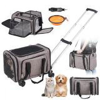 KFFKFF Cat Carrier with Wheels,Airline Approved,25 lbs Rolling Pet Carrier Grey for Cat Dog Small Medium Animals Kitten Puppy