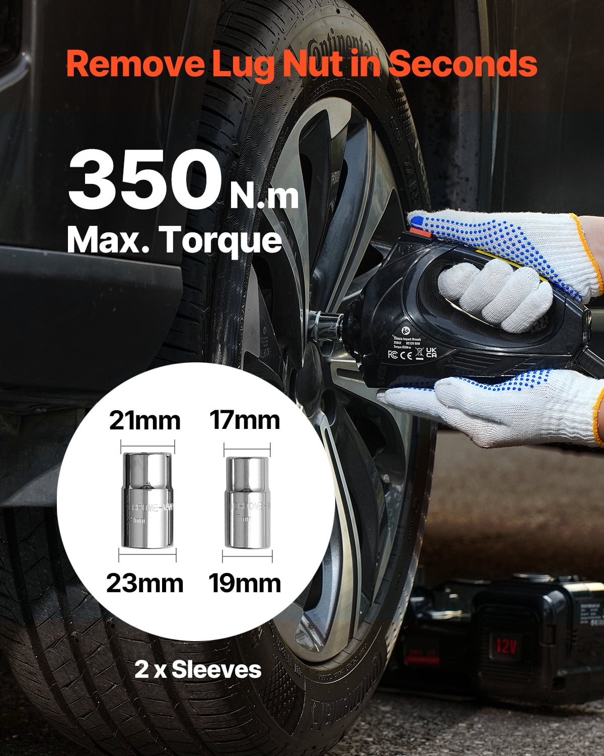 Inflation & Lifting Combo: The KFFKFF electric car jack combines inflation and lifting functions, providing convenience and efficiency. It comes with 3 standard nozzles to quickly inflate the tire. Suitable for 5T Vehicles: Specifically designed for lifting single tires on 5T vehicles, the KFFKFF hydraulic jack offers a hydraulic lift range of 6.1-17.7 in/155-450 mm (short rod) and 9.2-20.9 in/235-530 mm (extended rod). It is suitable for cars, SUVs, and vehicles with varying ground clearance. Please note that the jack must be used on a flat surface and positioned vertically to the vehicle. Efficient Electric Wrench: The KFFKFF electric wrench is a powerful tool with a maximum torque of 350 N.m. It allows you to tighten or loosen bolts in seconds. The wrench includes 2 hexagonal sockets that are compatible with 4 bolt sizes (17/19mm and 21/23mm), making it suitable for most wheel nuts. Dual Power Supply: The KFFKFF electric car jack is equipped with a cigarette lighter and a 12V car power clamp, providing flexible power options. For vehicles over 5T, we recommend using the car power supply to ensure stable lifting. Additionally, 2 spare fuses are included to prevent fuse burnout. Clear Marking & LED Light: Safety is a top priority with the KFFKFF electric car jack. It features bright LED lighting for emergency illumination, allowing for secure tire changes even at night. The toolbox is marked with a red reflective triangle, enhancing vehicle visibility.