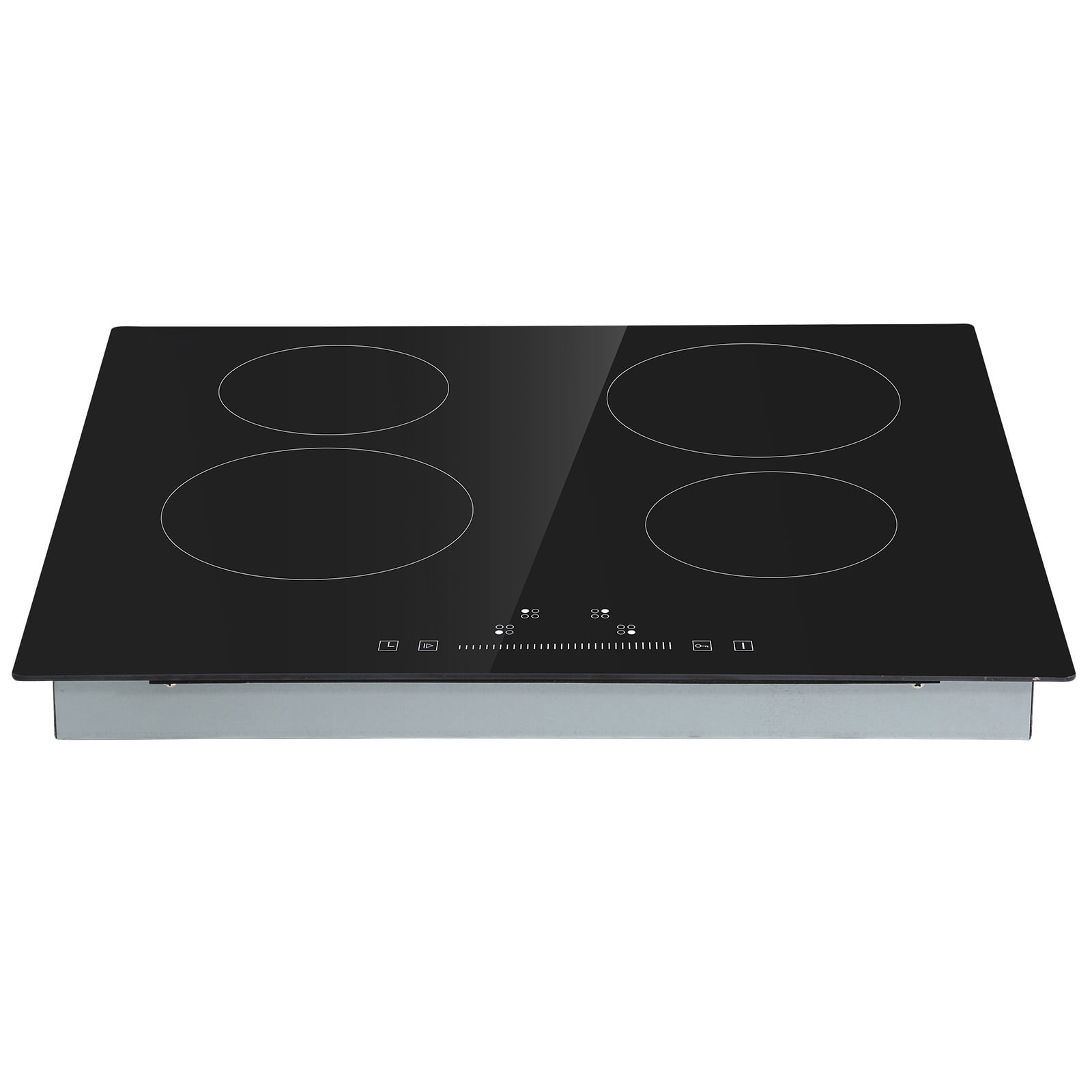 Separate Cooking Zones: This cooktop is your best choice for a high-quality cooking experience.Our ceramic cooktop features 4 independent cooking zones with a total power of 6000W. The surface of our radiant cooktop is made of glass, ensuring that it is heat-proof and easy to clean. Besides, the body has excellent heat dissipation and is sturdy & durable for long-term usage. Digital Sensor Touch Controls: Our built-in electric stovetop has 9 heating power levels. This sensor touch control panel is ideal for achieving accurate cooking effects.With a temperature control, it allows you to precisely switch into different levels from boil to simmer. In addition, the 1-99min timer is equipped, making cooking easy and enjoyable. Set the power and timer and let the cooktop do the rest. is free for you to use any cookware with this electric radiant cooktop, such as aluminum pans, copper pans, cast iron frying pans, and non-magnetic stainless steel pans. Multiple guarantee functions: Children’s security lock avoids accidental contact, and overheating protection and automatic shutdown functions make you avoid accidents. Without high -frequency radiation, you can use it confidently. In addition, when the high temperature is kept on the ground, the remaining heat reminder will indicate that you avoid burn in the process of cleaning. After turning off the cooking utensils, the fan needs to work for a while to cool. Built-in Design: Suitable for voltages of 220-240V, 50/60Hz.With the 23.2×25.6-inch cutout size, this 23.2×20.5 inch cooktop adopts a built-in design, convenient for you to install and saves your kitchen space.
