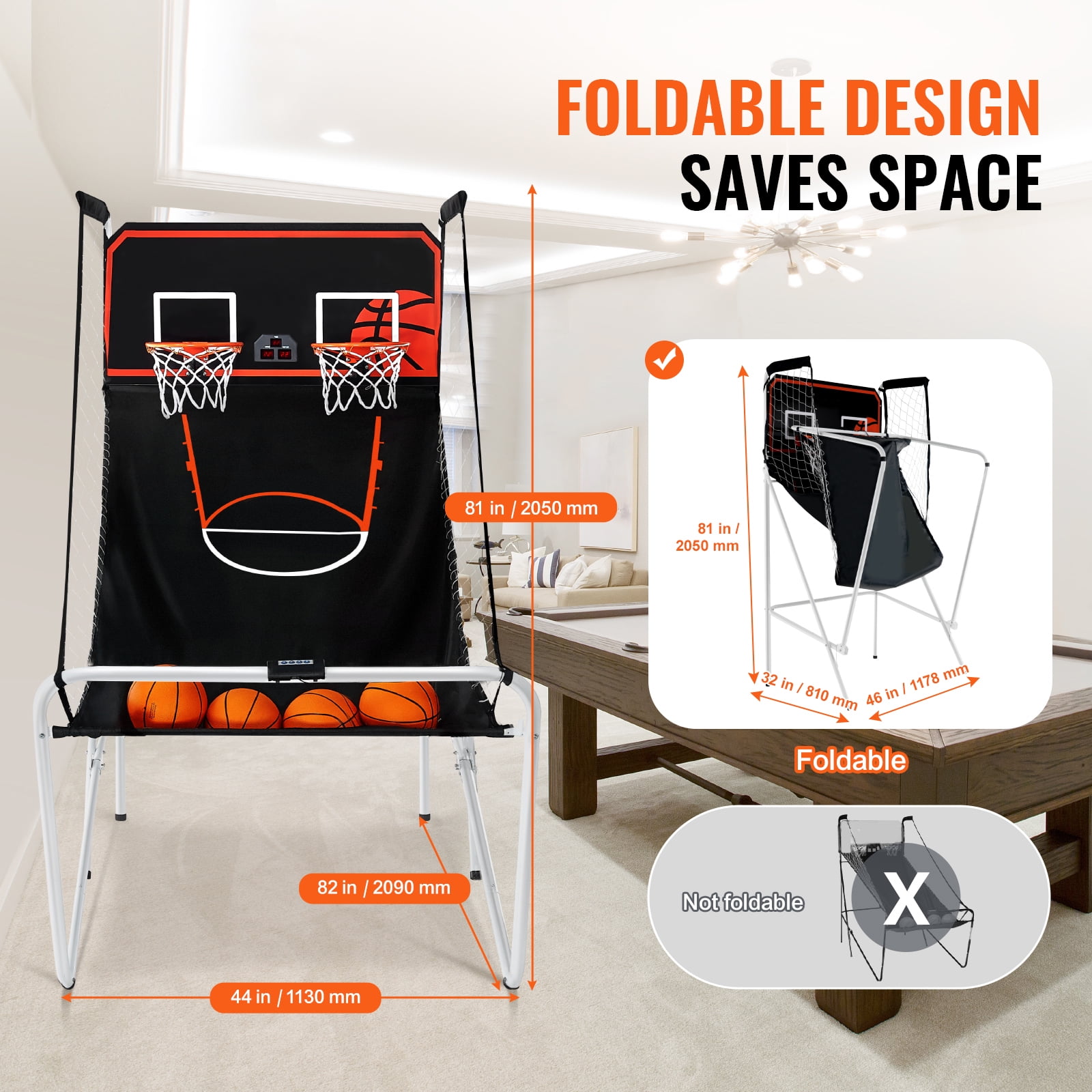 KFFKFF Foldable Basketball Arcade Game, Indoor Double Shot Basketball Arcade Game 2 Player with 4 Balls Electronic Scoreboard for Kids Adults