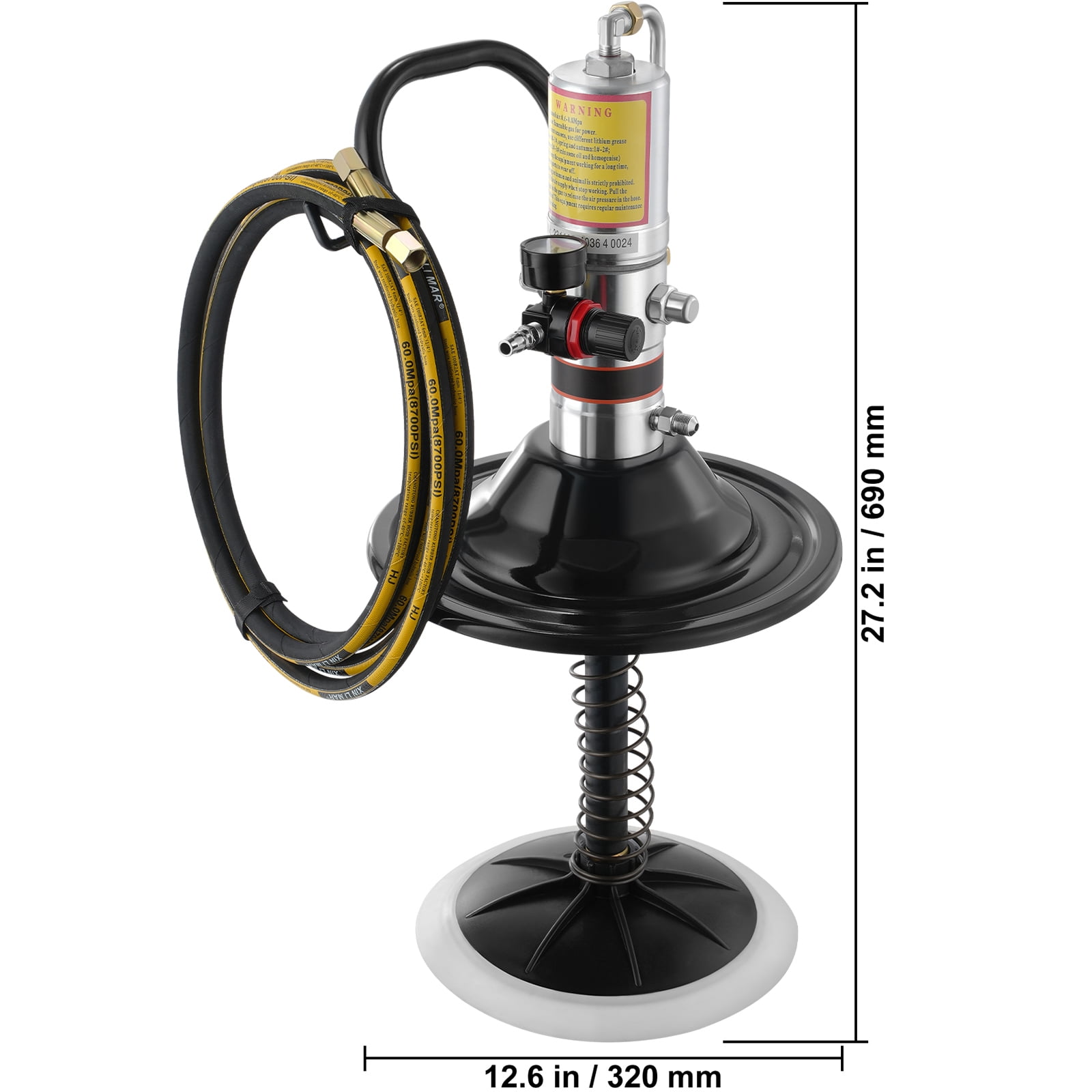High-Efficiency Lubrication: Our grease pump is ready for anything – cars, hefty farm machinery, or even yachts. Designed for 0-3# grease, it pumps up to 740 g of grease per minute, tackling the thick 3# grease with ease. Keep your machines in top-notch condition effortlessly. Built to Last: Crafted from solid aluminum, this air operated grease pump is ready for the long haul. Whether you’re out in the field or in the workshop, this is the reliable partner you need. Get ready to lubricate with ease and keep every machine running like a dream! It’s All in the Details: We’ve thought of everything with our pneumatic grease pump, and every aspect is meticulously designed. With a nozzle that spins a full 360 degrees, a standard NPT fitting, plus an accurate pressure valve, refueling is not just precise; it’s a breeze. Unfazed by the Heat: The 13 ft double-layer steel wire hose is a powerhouse designed for pressures up to 60 Mpa (8700 psi). A hot summer day or a chilly winter morning is no problem. This portable grease pump handles temperatures up to 100℃ with ease, ensuring consistent performance year-round. One-Stop Lubrication Solution: Say goodbye to lubrication hassles. Whether your machine is complex or your needs are diverse, our grease air pump’s got you covered. Its stable performance and efficient output turn maintenance into a walk in the park.