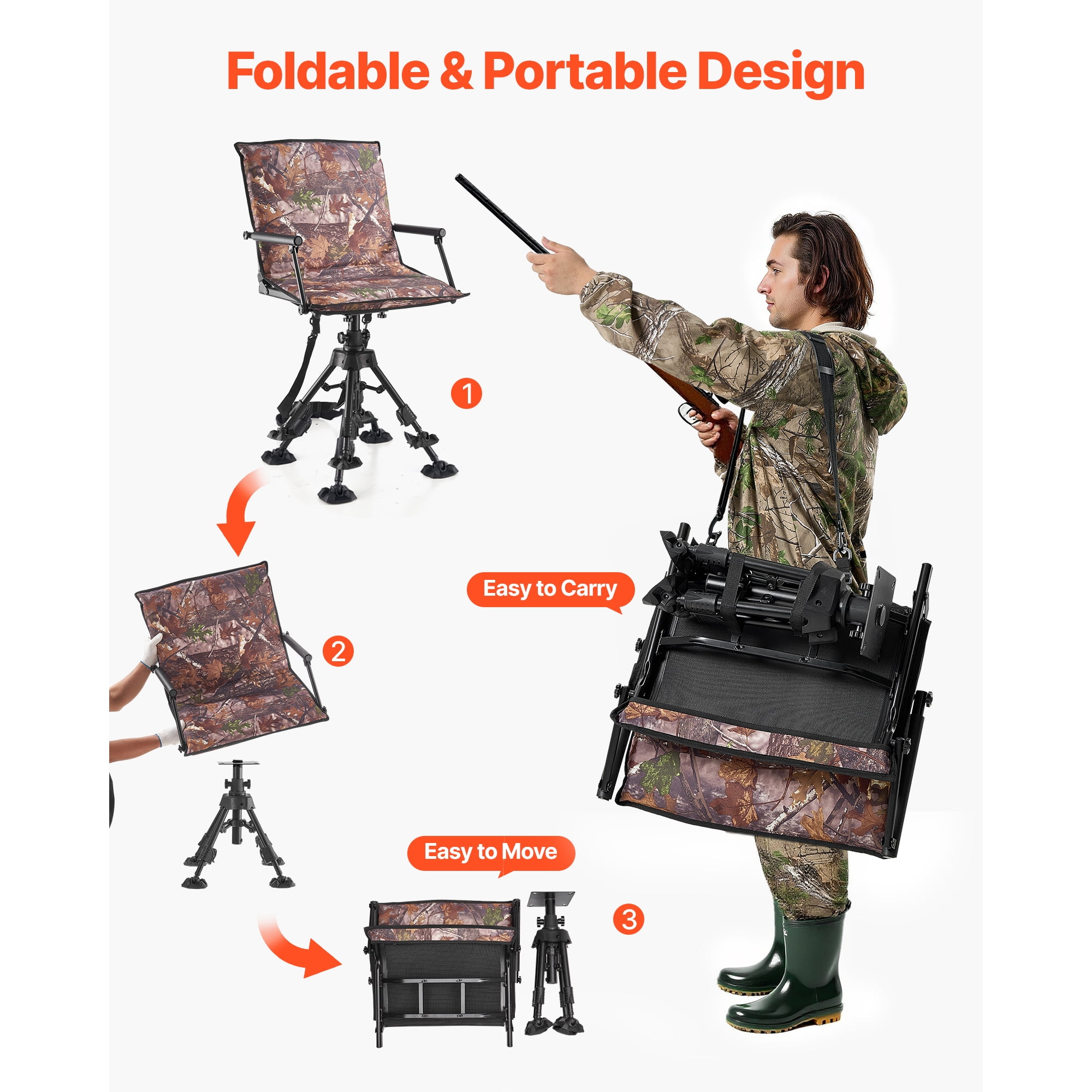 KFFKFF Hunting Chair with 360° Quiet Rotation, Foldable Design, Portable Blind Seat, Durable Steel Frame, Armrests, Protective Cover, Anti-Sink Feet, Adjustable Height, 350 Lbs Weight Limit