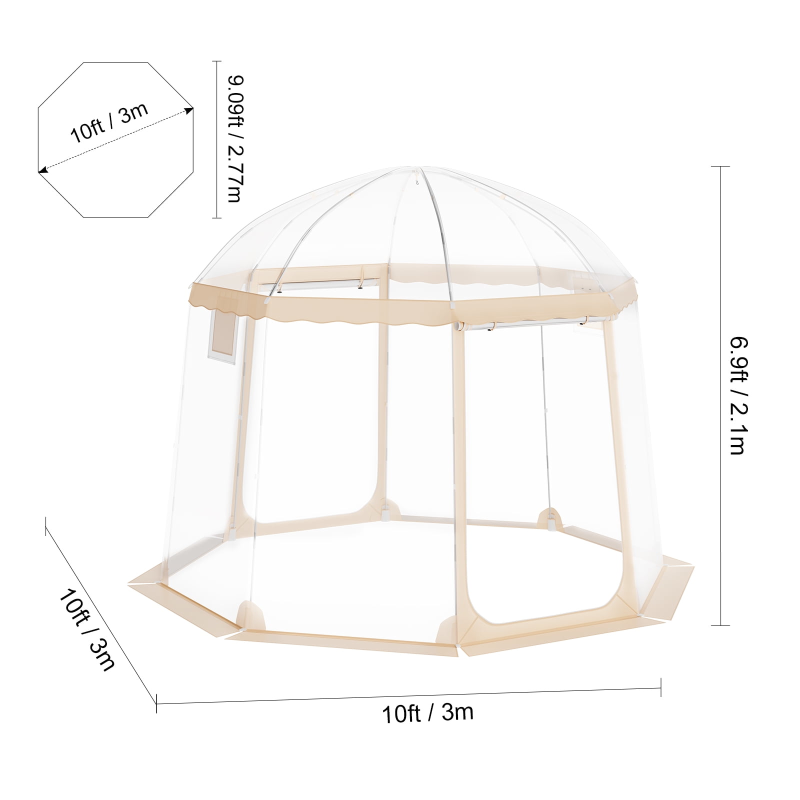 Product Description KFFKFF Sports Tent: Your Outdoor Adventure Companion Experience the perfect blend of comfort and clarity with this football tent. Crafted from premium PVC material, it offers a spacious and warm interior, ensuring your utmost coziness while providing breathtaking views of the surroundings. The sturdy fiberglass poles guarantee stability even in challenging outdoor conditions. Equipped with a convenient window and a bottom skirt, this tent effectively keeps pesky flies at bay while allowing refreshing air to circulate. Setting up and folding down this tent is a breeze, thanks to its lightweight and portable design. Whether you’re camping, watching sports, fishing, or simply basking in the sun, this tent is your ideal companion. Spacious Outdoor Tent Experience the ultimate relaxation in the great outdoors with our 10 x 10 ft sports tent. This generously sized tent provides ample space for 4-8 people, allowing you to unwind comfortably. Additionally, it offers extra room for chairs and other gear, ensuring a cozy spot for you to kick back and enjoy your outdoor adventures. Weatherproof and Wind-Resistant Design Crafted from tear-resistant, clear PVC material, our sports tent is designed to keep you warm and dry in any weather condition. Its waterproof construction and sturdy frame make it highly durable and capable of withstanding strong winds, providing you with peace of mind during your outdoor activities. Convenient and Portable Designed for grab-and-go convenience, our sports tent effortlessly folds up into its own carry bag. This compact and lightweight design allows you to easily take it along on any outdoor trip, making it a space-saving solution for your adventures. Enhanced Comfort Equipped with two side windows and bottom skirts, our sports tent ensures optimal airflow while keeping pesky flies out. This feature creates a breezy and comfortable environment, allowing you to fully enjoy your outdoor experiences. Versatile and Reliable Whether you’re camping, attending a game, or hosting gatherings and parties, our weatherproof sports tent has got you covered. Its versatile design makes it suitable for various outdoor activities, providing you with a reliable shelter wherever you go. 360-Degree Panoramic View Immerse yourself in the action with our transparent plastic weather tent. Offering a wide-angle view of 540°, this tent provides excellent lighting and ensures that you won’t miss a single moment of the excitement. Specifications Item Model Number: 120972 Occupant Capacity: About 4-8 People Product Weight: 21.61 lbs/9.8 kg Product Size: 10 x 10 x 6.9 ft/3 x 3 x 2.1 m Package Content 1 x Sports Tent Kit