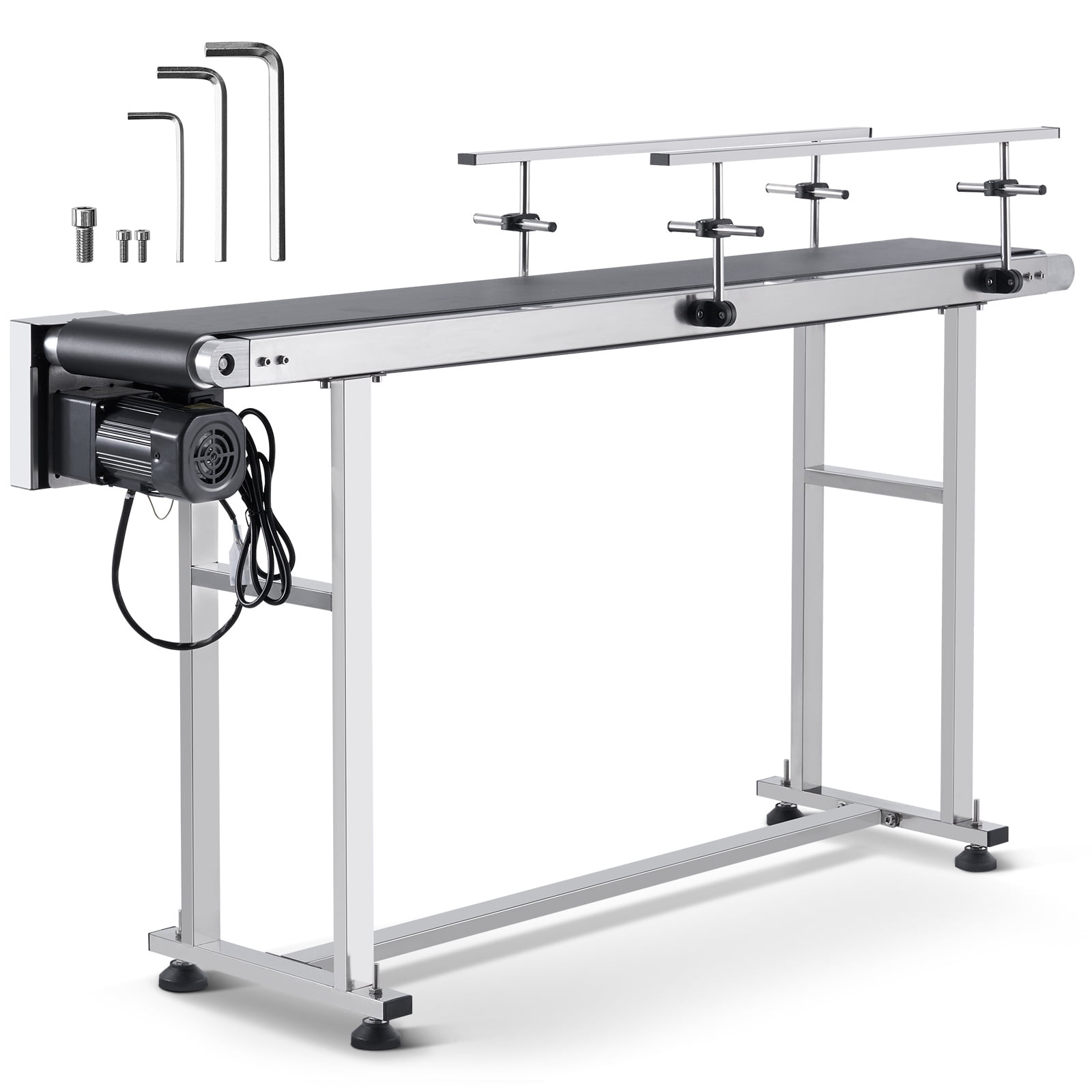 Product Description KFFKFF Belt Conveyor – Smooth and Efficient Transportation In need of a reliable and adaptable conveyor solution? Look no further than our KFFKFF belt conveyor! Constructed with robust stainless steel and a resilient PVC belt, this conveyor offers seamless and efficient transportation in any environment. With its extensive speed adjustment choices and ability to operate in both directions, it guarantees uninterrupted equipment operation. Additionally, it features automatic overheat protection for added safety and peace of mind. Sturdy and Durable Construction Introducing our KFFKFF belt conveyor, designed to bid farewell to flimsy conveyors! Crafted with an industrial-grade stainless steel structure, this conveyor guarantees exceptional stability and durability. It effortlessly handles heavy loads and operates seamlessly for extended hours, proving its professional-grade performance. Additionally, its scratch-resistant and rust-proof exterior ensures long-lasting strength, even in challenging conditions. Reliable PVC Belt Experience the reliability of our KFFKFF conveyor’s industrial-grade PVC belt. This belt is not only highly durable but also exhibits exceptional wear-resistant and anti-static properties. It effortlessly accommodates items of various sizes, making it a versatile choice. Adjusting the tension is a breeze with the rotating screw mechanism, allowing for effortless customization. Flexible and Customizable Our KFFKFF PVC flat belt conveyor offers versatile adjustment capabilities to cater to your specific requirements. With adjustable speeds ranging from 30 to 120 RPM and the option for bi-directional operation, this conveyor adapts to your needs effortlessly. The customizable guardrail heights ensure both security and efficiency, providing a seamless production process. Advanced Overheat Protection Equipped with advanced overheat protection, our electric PVC conveyor prioritizes safety and convenience. If the motor temperature exceeds 115℃ (239℉), it automatically shuts down to prevent any damage. Once it cools down to 71.6℃ (160.9℉), it resumes operation, ensuring uninterrupted workflow without the need for constant monitoring. Wide Range of Applications No matter your industry, whether it’s chemical, pharmaceutical, food and beverage, or automotive manufacturing, our KFFKFF PVC conveyor is the ideal solution. Its precision, security, and efficiency make it an indispensable tool for streamlining your production process and achieving optimal results. Efficient Current Protection Say goodbye to worries about high currents! Our flat conveyor belt system features a reliable regulator that activates if the current exceeds 1.5A, effectively protecting it from burnout. Simply power it back on, and you’re ready to resume operations hassle-free! Specifications Item Model Number: MS15020 Belt Size: 59 x 7.8 in/1498.6 x 198.1 mm Conveyor Belt Speed: Bi-Directional Variable Speed, 28 m/min Table Width: 9.9 in/252 mm Load Capacity Limit: 82.67 lbs/37.5 kg Material: 201 Stainless Steel Product Weight: 40.79 lbs/18.5 kg Product Size: 58.86 x 14.17 x 35.91 in/1495 x 360 x 912 mm Package Content 1 x Belt Conveyor