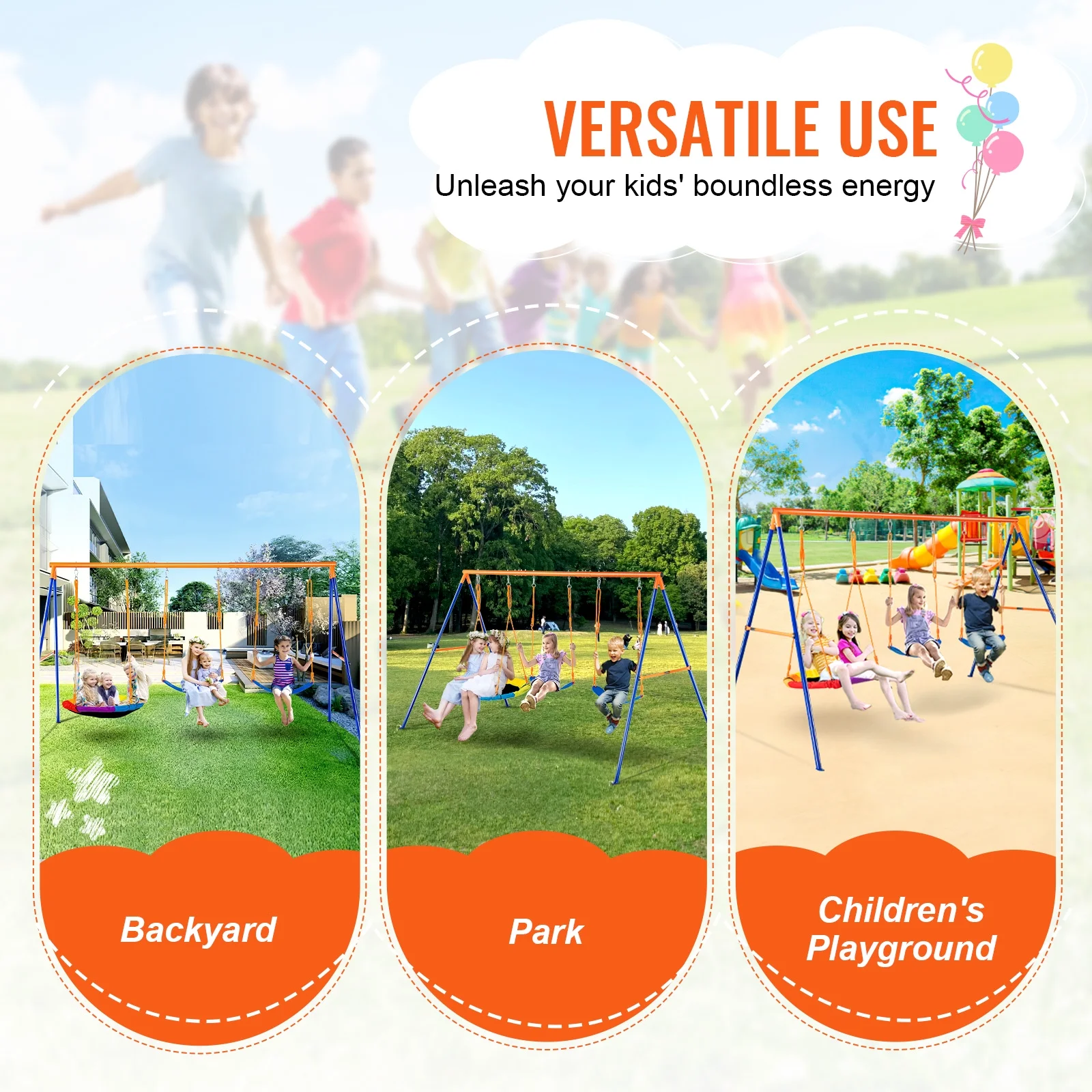 Sturdy Construction & High Weight Capacity: The KFFKFF swing set boasts a robust A-frame structure and sturdy ground stakes, ensuring a maximum weight capacity of 600 pounds (272 kilograms). Its triangular design enhances stability, providing a safe swinging experience. Premium Oxford Fabric Seat: Our backyard swing sets feature a high-quality Oxford fabric seat known for its durability and colorfastness. Even after prolonged use, it remains resistant to wear and tear. The adjustable high-quality PE ropes are sun-resistant and do not fade over time. Convenient Installation: This toddler swing set comes with an all-metal frame that is easy to assemble and store. Follow the detailed instructions to assemble it with your children, promoting quality family time and enhancing their motor skills. Spacious and Adjustable: Unlike standard swings, this outdoor swing set offers a spacious swing experience. The rope length is adjustable based on children’s height, making it suitable for kids at different stages of growth. Perfect Gift: With its attractive design and sturdy structure, the KFFKFF outdoor swing set is an ideal gift for children. Whether it’s a birthday party or simply spending more time playing outdoors, it promotes muscle development, motor skills, and balance while enjoying nature.