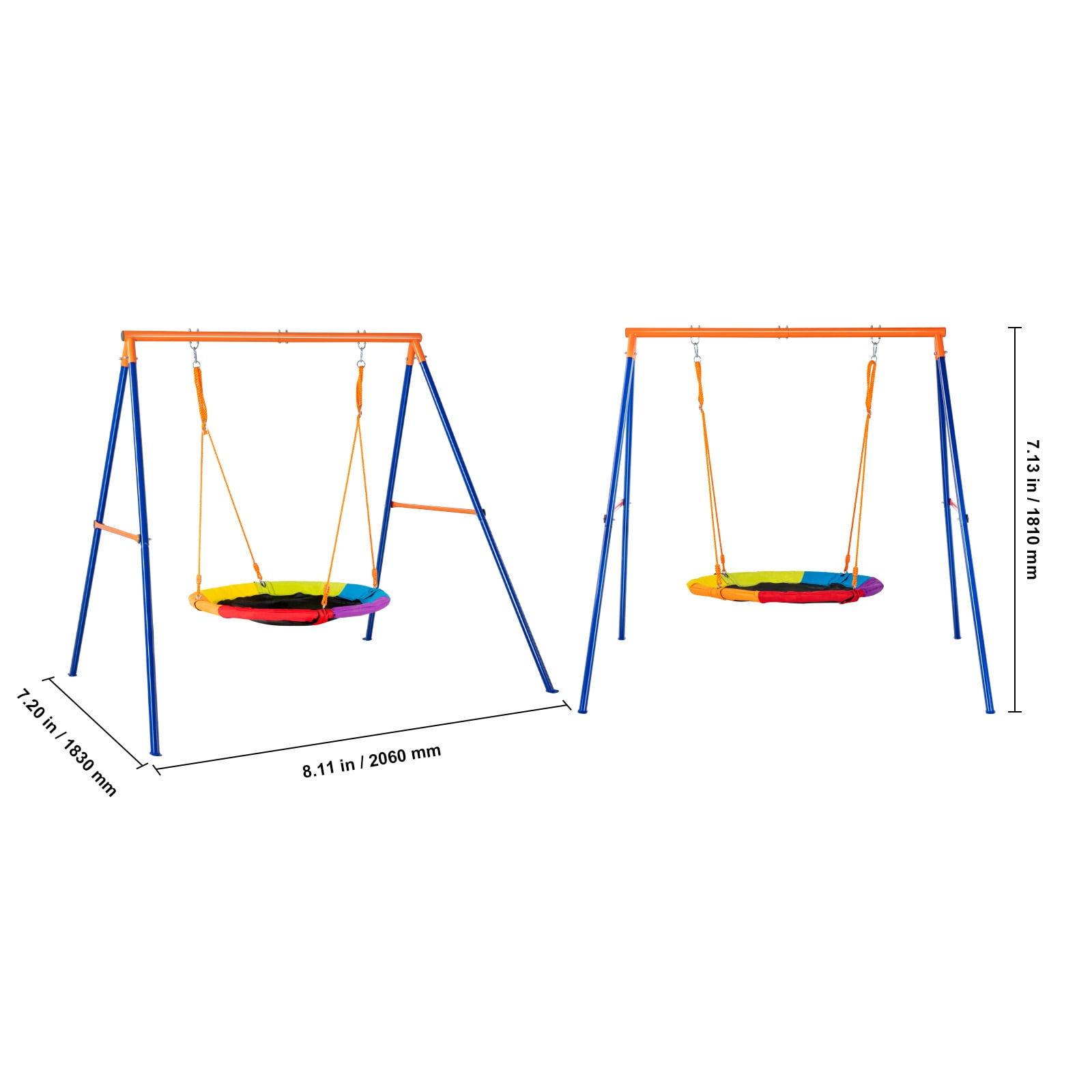 Product Description KFFKFF A-Frame Swing Set – Create Lasting Memories Experience endless fun with the KFFKFF A-frame swing set. Crafted with a durable A-frame design, this swing set ensures stability and safety for your child. The adjustable height feature allows for easy customization to accommodate your child’s growth. The seat is made from premium fabric, providing comfort and durability even with prolonged use. The high-quality PE rope is designed to withstand wear and tear, ensuring long-lasting enjoyment. This swing set is the perfect gift for kids, promoting their motor skills and creativity. A-Frame Swing Set for All-Around Fun Introducing our versatile A-Frame Swing Set, designed to provide endless fun for children. With a sturdy structure and robust ground stakes, this swing set can support up to 440 pounds (199.6 kg), ensuring safety and comfort during active play. Solid Construction for Reliable Swinging Experience stable swinging with our swing set’s solid structure and strong ropes. The galvanized steel safety locks are resistant to rust and corrosion, enhancing durability. The high-quality Oxford fabric seat is wear-resistant, while the 4 ground nails provide added stability. Customizable Swing Options Enjoy a variety of swinging experiences with our interchangeable base. The seat of this toddler swing set can be easily replaced with any type of swing bar, allowing you to cater to different preferences effortlessly. Quick and Easy Assembly Setting up our swing set is a breeze with the included clear and detailed instructions. You can involve your beloved children in the assembly process, creating enjoyable family moments. The detachable metal frame also allows for convenient storage. Perfect for Various Settings Whether it’s in your backyard, a park, a kindergarten, or an entertainment center, our outdoor swing set is suitable for all. Encourage your children to spend more time outdoors and create joyful childhood memories. Universal Compatibility Our A-Frame swing set is compatible with all types of swings. Easily replace the round swing with any swing bar to achieve different swinging experiences effortlessly. Specifications Item Model Number: JX-SW01 Maximum Load Capacity: 440 lbs / 199.6 kg Round Seat: 40 inches / 101.6 cm Metal Frame Material: Steel Pipe Seat Material: 900D Oxford Fabric Swing Rope Material: PE Rope Rope Adjustable Range: 33.5-55 inches / 85-140 cm Product Weight: 36.71 lbs / 16.65 kg Package Content 1 x Swing Set 1 x User Manual