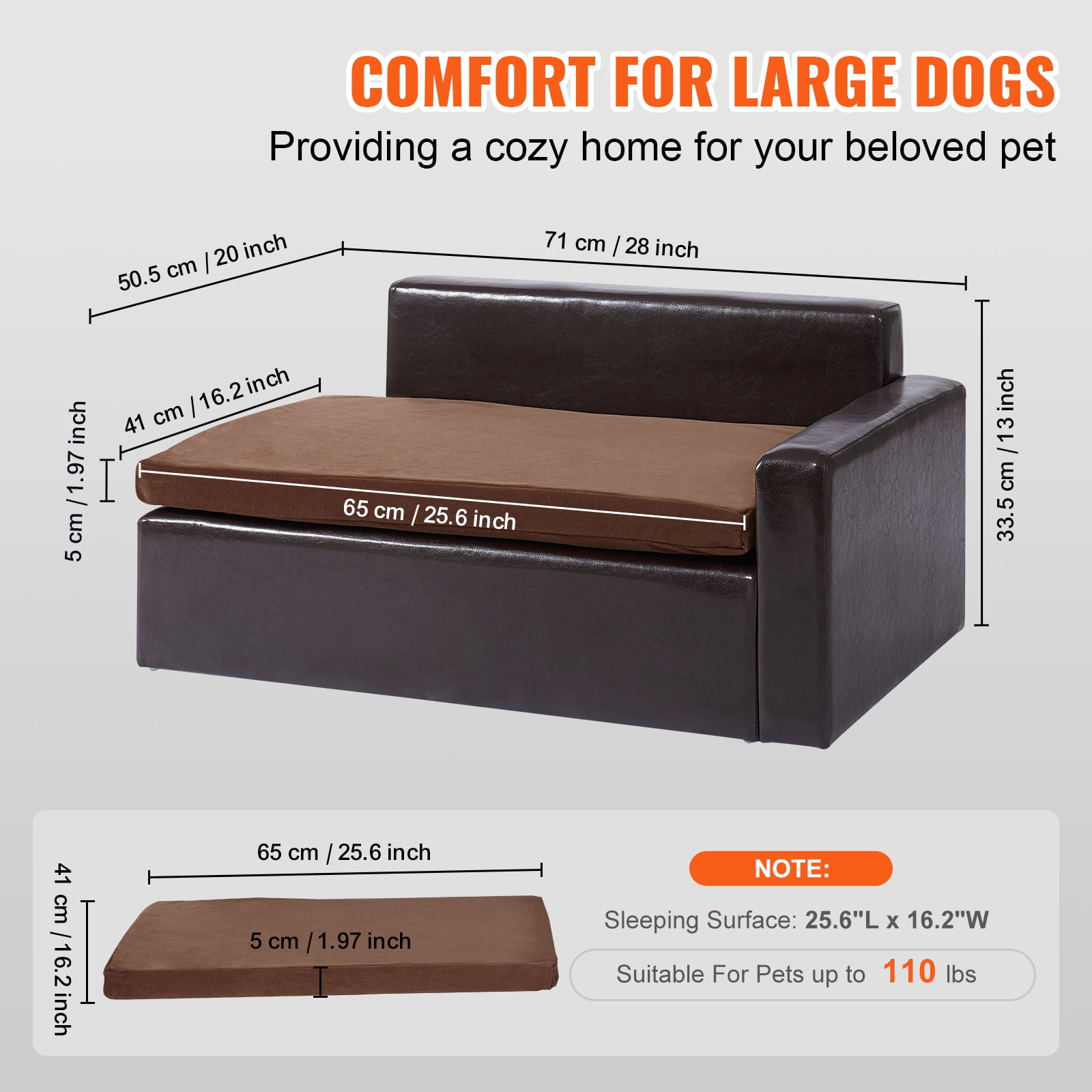 Suitable Size: Our pet sofa, measuring 28x20x13 inch, offers spacious comfort for pets of various sizes, from Chihuahua to golden retrievers. Crafted with sturdy solid wood and leather fabric, it’s durable and ideal for multi-pet households. Safe Weight-bearing: With a robust capacity of 110 lbs, KFFKFF dog sofa provides strong support for breeds like Labrador or lively Rottweilers, offering a secure retreat for your pets. High-Quality Materials: The smooth and soft leather surface is scratch-resistant and bite-resistant, and easy to clean, allowing pets to rest comfortably while reducing cleaning burden. The interior is filled with high-density sponges to support your pet’s joints and protect their health. Practicality Meets Style: More than just a pet accessory, our dog sofa couch complements your home decor effortlessly. The smart design of the 2 storage cabinets frees up space, and its appearance blends seamlessly with any interior style. Easy Assembly: The brown dog bed couch is easy to install without complicated steps. Done by one person! Suitable for various places, whether in your living room, bedroom, pet store, or clinic, enhancing your pet’s quality of life.