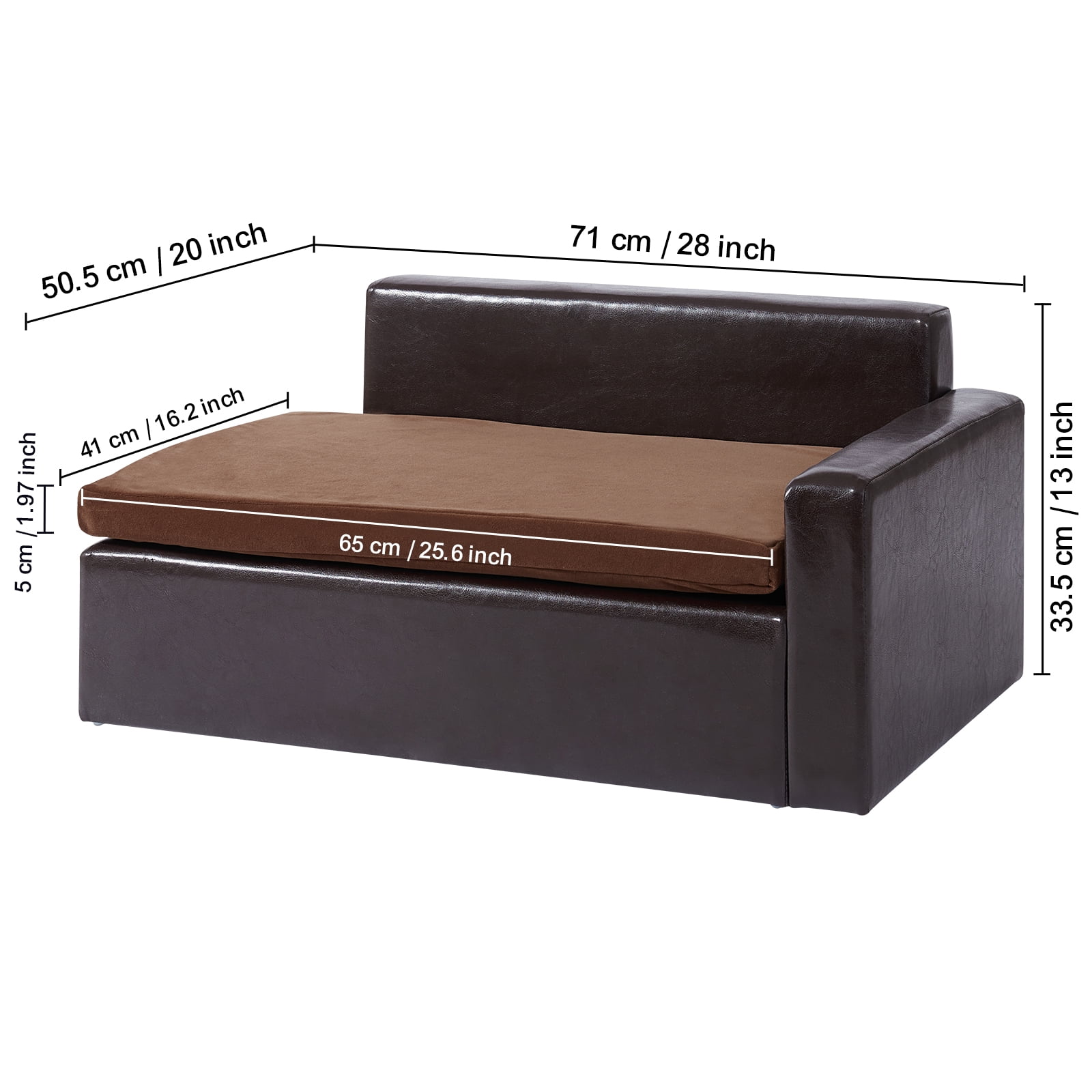 Product Description Provide Comfort and Stability for Your Furry Friends! Our pet sofa features a 2″ high-resilience sponge for unmatched comfort! The solid wood frame supports up to 110 lbs, offering a cozy yet sturdy resting place even for large-size dogs. Thickened Sponge This dog bed couch uses a 5cm/1.97″ high-resilience sponge for interior support, with a mattress of moderate firmness that enhances pets’ sleep quality, ensuring sweet dreams every night. Stylish Design More than a pet accessory, this dog sofa bed is a fashionable addition to any room. Available in various colors to match different decor styles, its strong support and solid wood frame accommodate even large dogs without sacrificing elegance. Quick Assembly Assemble your dog sofa couch in just four simple steps! From attaching the legs to tightening the screws and placing the cushion, each step is straightforward. Even pet owners not skilled in DIY can quickly create a stable resting space for their pets. Thoughtful Details From 2″ legs to hex-reinforced bottoms, every detail is carefully considered. The removable cushion makes cleaning simple, providing more than just a sleeping spot—it’s a home filled with love. Leather Fabric This pet sofa features smooth, durable leather that makes daily cleaning a breeze. Simply wipe with a damp cloth to restore its pristine condition. No worries about pet hair or stains, ensuring a delightful experience for both you and your beloved pet! A Soft and Comfortable Home This pet couch is designed to support pets up to 110 lbs, featuring a 2″ high-resilience sponge and scratch-resistant leather surface, offering a soft, comfortable home. The sofa includes two storage cabinets for tidy storage and a removable, washable cushion for easy cleaning. Perfect for any home or pet store! Specifications Item Model Number: SF-909S Fabric Material: Leather Weight Capacity: 110 lbs/50 kg Main Materials: Wood, Fabric, Foam Product Weight: 8.2 kg/18.07lbs Product Dimensions (LxWxH): 710x505x335 mm/28x20x13 inch Package Content 1 x Pet Sofa