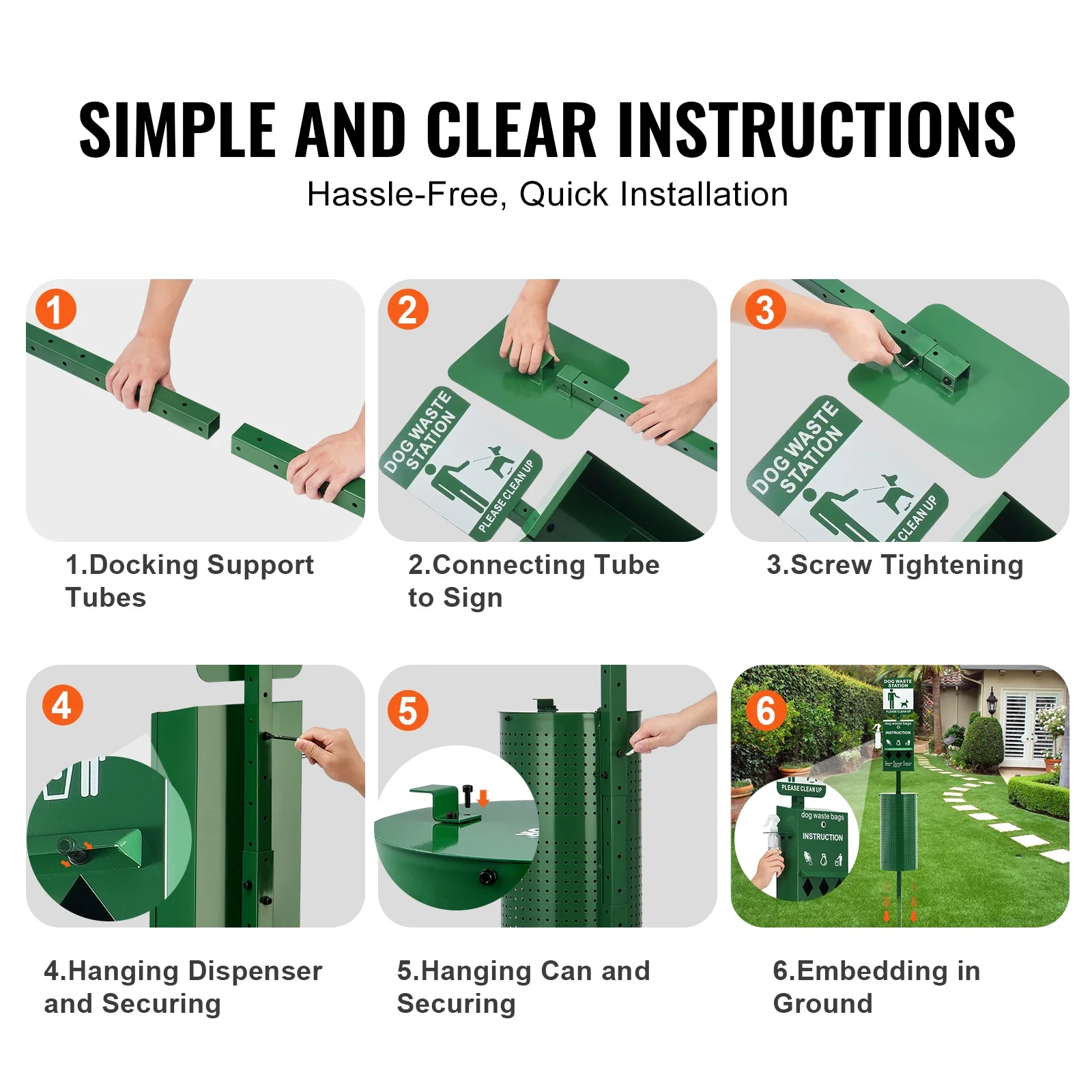 Product Description KFFKFF 11.5 Gallons Dog Waste Station Constructed from sturdy galvanized steel, this 11.5-gallon dog waste station in a vibrant green color is a perfect addition to pet-friendly environments such as parks, backyards, residential areas, and grooming salons. It includes 600 pickup bags and 50 trash bags, ensuring an ample supply for waste disposal. With its exceptional quality and durability, this waste station guarantees a great user experience. The installation process is hassle-free, and it comes with abundant accessories to meet all your waste management needs. Clean and Fresh Environment Create a pleasant and odor-free outdoor space with the KFFKFF dog waste station. Its indispensable role in maintaining cleanliness cannot be overstated! Convenient Waste Management Prepare for the future with our package of 600 waste bags and 50 liners, ensuring you have an ample supply for long-term use. User-Friendly Design Enhancing usability, the KFFKFF dog waste station features a sealed lid and liner clip, making clean-up easier and more efficient than ever before. Easy Installation Adapting to various settings, the KFFKFF dog waste station can be easily installed in the ground, providing a sturdy base that meets all your diverse needs. Effortless Dog Walking and Clean-Up Simplify your dog walking routine with the KFFKFF dog waste station, which includes a trash can and bag dispenser. Experience a hassle-free life! All-Weather Bag Dispenser No matter the weather, the KFFKFF bag dispenser keeps your waste bags dry and ready for use with its rain-resistant design. Specifications Item Model Number: HBD008-1 Color: Green Total Height: 90.5 in Trash Can Capacity (Gallon): 11.5 Gallons (43L) Product weight: 18.9 kg/41.7 lbs Size: 11.8 x 11.8 x 90.55 inches (300 x 300 x 2300 mm) Package Content 50 Liner Bags (Trash Can) 600 Rolls x Waste Bags 1 x Hand Wash Bottle 4 x Keys 1 x Rain Shield 1 x User Manual 1 Set x Installation Tool