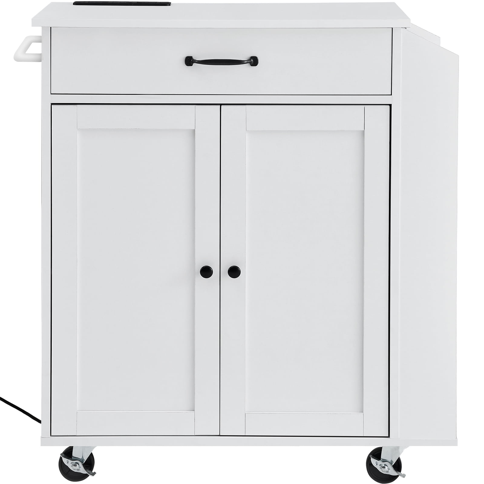 Product Description KFFKFF Island for Kitchen with Charging Station Enhance your culinary experience with this versatile KFFKFF Island for Kitchen. Designed to provide additional space, it offers a convenient charging solution for various kitchen appliances. Equipped with a power strip featuring three outlets and a long power cord, this island ensures easy access to power. Its humanized design allows for convenient storage, making it a perfect addition to any kitchen. Crafted from sturdy materials, this multifunctional island guarantees durability and reliability for all your cooking needs. KFFKFF Kitchen Island with Charging Station Enhance your culinary experience with the KFFKFF Kitchen Island with Charging Station. This versatile kitchen island provides ample space for all your culinary creations while offering convenient charging options for your kitchen appliances. The power strip features 3 outlets and a long power cord, ensuring easy access to power wherever you need it. Convenient Storage and Organization Experience the ultimate convenience and storage with the KFFKFF Kitchen Island. Featuring drawers, cabinets, a spice rack, and a towel bar, this kitchen island offers ample space to store and organize all your kitchen essentials. From cutlery and cookware to bowls and plates, everything can be easily stored and accessed. You can even keep your kitchen utensils such as toasters neatly tucked away. User-Friendly and Mobile Designed with your convenience in mind, the KFFKFF Kitchen Island is equipped with four 360-degree rotating wheels, two of which are lockable. This allows you to effortlessly move the island or keep it stationary as per your needs. The adjustable shelves provide flexible storage options, accommodating items of various sizes. Additionally, the island comes with a charging station, ensuring your appliances are always ready to use. Durable and Easy to Clean Crafted from premium particle board, medium-density fiberboard, and sturdy metal, the KFFKFF Kitchen Island offers a sturdy and durable structure with a strong load-bearing capacity. The smooth surface makes cleaning a breeze—simply wipe away dust and light stains with a cloth. This ensures that your kitchen island remains in pristine condition for years to come. Sleek and Timeless Design Experience a unique aesthetic with the sleek and minimalist design of the KFFKFF Kitchen Island. Its elegant appearance adds a touch of sophistication to any kitchen decor. The easy assembly process allows you to enjoy the convenience of this island effortlessly. Versatile and Multi-Purpose The KFFKFF Kitchen Island is not just limited to being a kitchen cart. It can also serve as a kitchen dining bar, coffee bar, or even find its place in hotels or bakeries. Its versatility makes it a perfect addition to any space, providing both functionality and style. Specifications Item Model Number: YS23354ss Color: White Product Weight: 50 lbs / 22.6 kg Product Dimensions: 32x15x34 inch / 810x380x860 mm Package Content 1 x Kitchen Island 1 x Set of Accessories