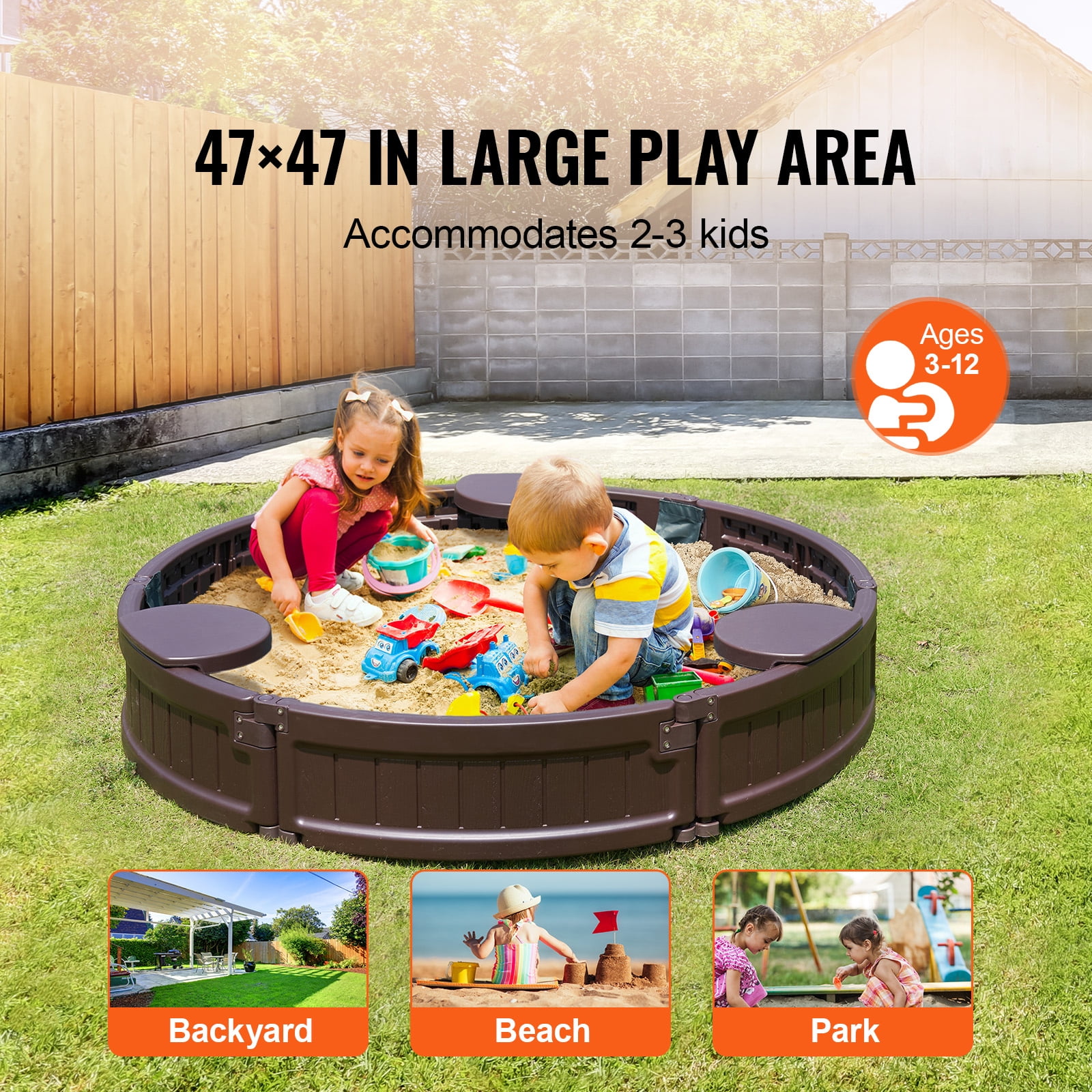 Product Description Experience Endless Fun and Creativity in Our Sandbox! Indulge in the joy and imagination that our sandbox brings! Made from top-quality HDPE material, our sandbox guarantees safety, durability, and effortless cleaning. With a perforated bottom liner, it ensures proper drainage, ventilation, and adjustable sand depth, providing a comfortable play area for children. Whether it’s in your backyard, at the beach, or in the park, our sandbox is the perfect choice for boundless fun and limitless creativity. Spacious Play Area The KFFKFF sandbox offers a generous play area measuring 47.2×47.2 inches, providing ample space for 2-3 children aged 3-12 to play together. This expansive design transforms your backyard into a vibrant mini playground, fostering interaction, cooperation, and social skills among children, while promoting teamwork and effective communication. Easy Installation Setting up the KFFKFF sandbox is a breeze, requiring no complex tools or assistance. With our detailed installation instructions, even a single person can effortlessly assemble the sandbox in no time. Follow our user-friendly tutorial and have your sandbox ready for playtime in a matter of minutes. Thoughtful Details The KFFKFF sandbox is designed with several thoughtful details to enhance the play experience. The perforated bottom liner ensures efficient drainage and ventilation, preventing the sand from becoming damp. Children can easily adjust the sand depth according to their preferences, allowing for customizable play. When not in use, the sand cover securely protects the sand from being blown away by the wind, keeping the sandbox clean and tidy. Ideal Gift for Children Transform your backyard, beach, or park into a captivating playground and social space with the KFFKFF kids outdoor sandbox. It is the perfect gift choice for children, offering endless fun and opportunities for social interaction. Watch as their imagination runs wild and their creativity flourishes in this engaging play environment. Oxford Fabric Sand Cover The KFFKFF sandbox comes with a top-quality Oxford fabric sand cover, renowned for its exceptional wear resistance and durability. This cover is designed to withstand long-term outdoor use without easily wearing out or breaking. It effectively prevents the wind from scattering the sand, ensuring that the area around the sandbox remains neat and clean at all times. Specifications Item Model Number: BXSB120 Appearance: Round Material: Premium HDPE Plastic Maximum Weight Capacity per Seat: 110 lbs / 50 kg Net Weight (including all accessories): 13 lbs / 5.9 kg Product Dimensions: Φ47.2 x 9.1 in / Φ120 x 23 cm Package Content 6 x Curved Panels 3 x Seat Boards 3 x Support Bench Legs 1 x Oxford Bottom Cloth 1 x Oxford Top Cover Cloth 6 x Connecting Plastic Clips 19 x Velcro Strips 6 x Ground Pegs 1 x User Manual
