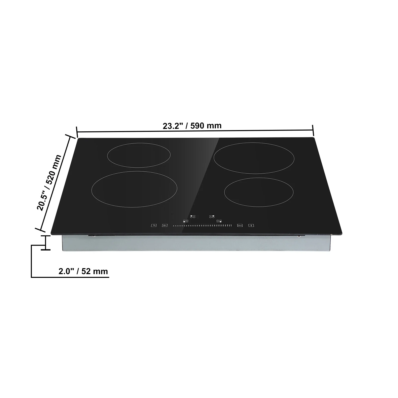 Product Description KFFKFF Electric Cooktop with Advanced Touch Controls Introducing the KFFKFF electric cooktop, a perfect blend of convenience and efficiency. With its powerful burners, this cooktop ensures rapid and stable heating for all your cooking needs. The advanced touch controls, featuring an easy-to-use ON/OFF switch, allow you to effortlessly adjust the heat to your desired level. Our cooktop is designed with your safety in mind, as it emits no high-frequency radiation, making it suitable for everyone, including gravidas. Experience the joy of cooking with confidence. This sleek built-in ceramic cooktop is a must-have for any modern kitchen. Efficient Heating Performance The KFFKFF electric cooktop offers exceptional heating performance with its 4 individual heating burners, delivering a powerful output of 6000W. Experience optimal heating efficiency and minimal heat loss thanks to its vertical heat conduction technology. Versatile Compatibility Experience the versatility of the KFFKFF ceramic electric stove, compatible with a wide range of cookware including aluminum pans, copper pans, cast iron frying pans, and non-magnetic stainless steel pans. Whether you’re boiling, simmering, frying, stewing, or more, this cooktop is suitable for various cooking styles. Enhanced Safety Features Prioritizing your safety, the KFFKFF radiant cooktop is equipped with multiple safety measures. Enjoy peace of mind with features like a child lock, overheat protection, spill-auto shutdown, and residual heat indicator. Experience a secure and worry-free cooking experience. Easy Installation Installing our KFFKFF electric cooktop is a breeze with its cutout size of 23.2×25.6 inches. Its built-in design not only simplifies the installation process but also saves valuable cooking space in your kitchen. Enjoy convenience and efficiency. Precise Temperature Control Take full control of your cooking with adjustable heating levels and sensor touch control on the KFFKFF cooktop. The separate burner controllers allow you to operate single or multiple burners according to your specific needs. Achieve precise and customized cooking results. Sleek and Easy to Clean Add a touch of style to your kitchen with the sleek KFFKFF cooktop. Its heat-proof glass surface not only enhances the aesthetics but also makes cleaning a breeze. Enjoy effortless maintenance and a beautiful appearance in your kitchen. Specifications Item Model Number: LT4-77 Voltage: 220-240V 50/60Hz Total Power: 6000W Time Setting: 0-99 Minutes Net Weight: 18.7 lbs/ 8.5 kg Item Size: 23.2 x 20.5 x 2.4 inch / 590 x 520 x 62 mm Package Content 1 x Cooktop 1 x User Manual