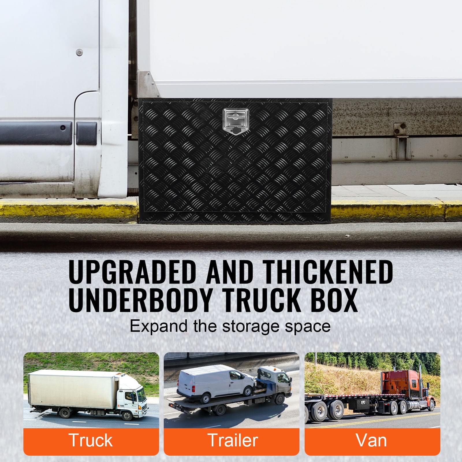 KFFKFF Underbody Truck Storage, 36″x24″x24″, Aluminum Diamond Plate, Lockable with Keys, Waterproof, T-Handle Latch, for Trucks, Vans, Trailers