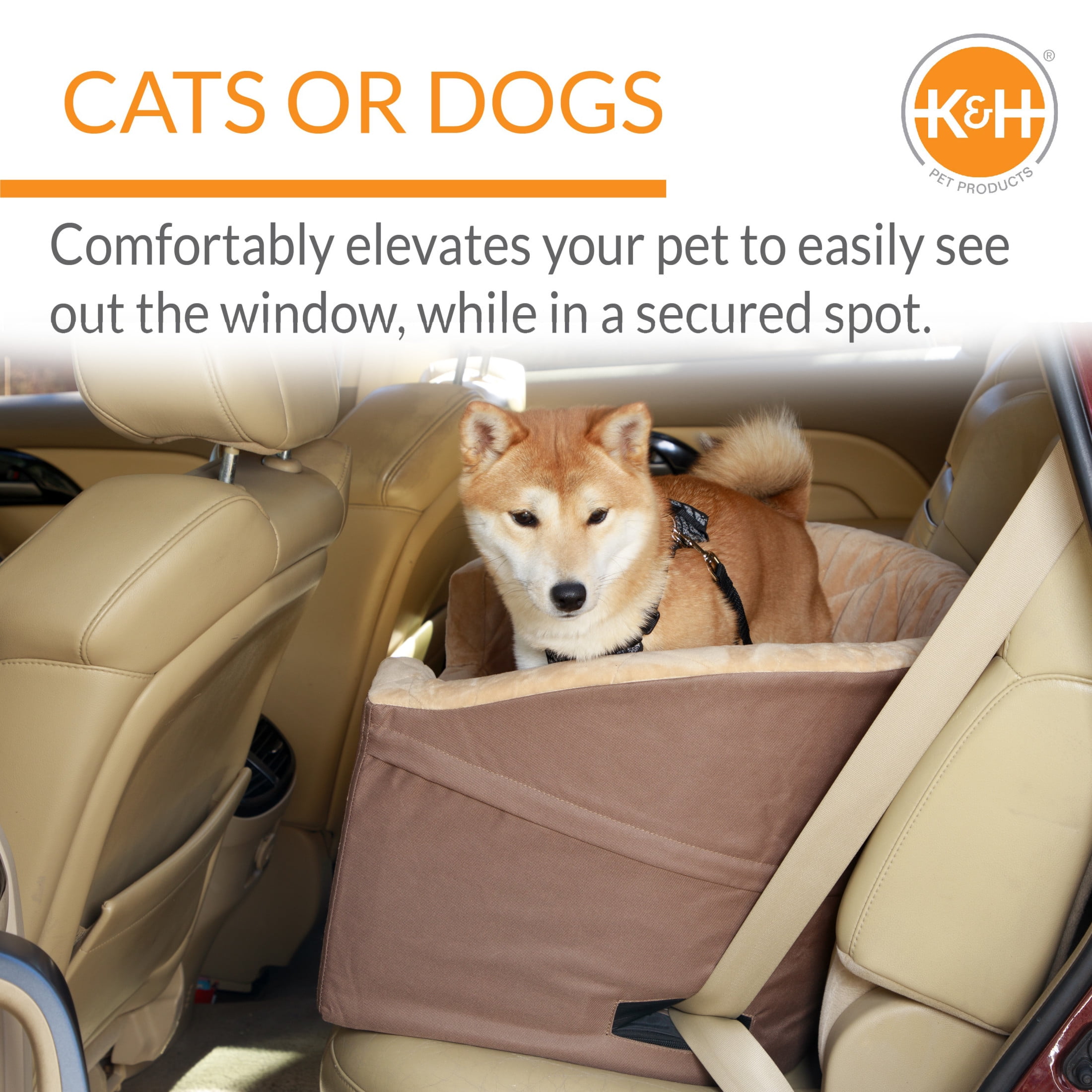 K&H Pet Products Bucket Booster Dog Car Seat with Seat Belt Knockdown Tan/Tan Large