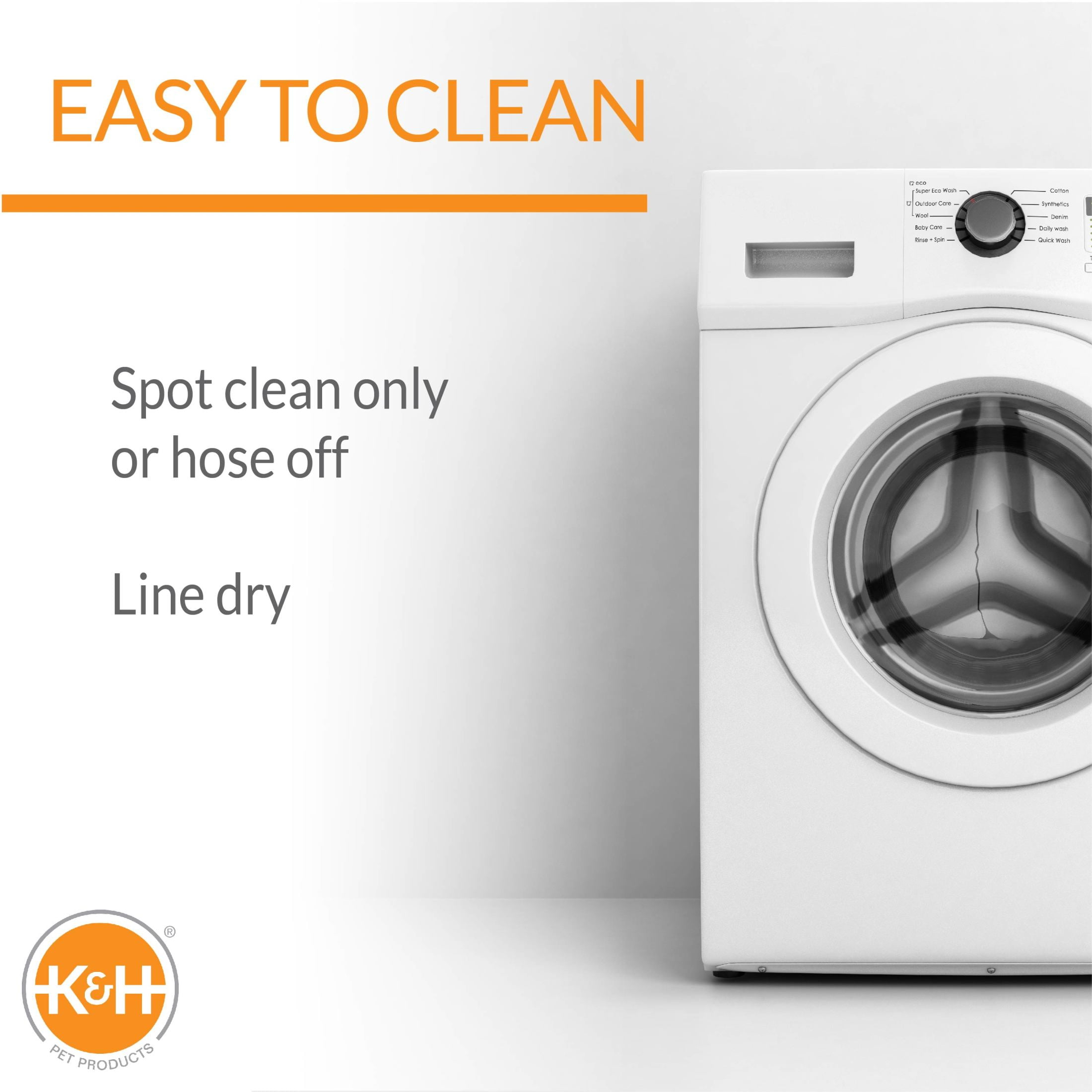 The K&H Coolin’ Pet Cot incorporates our Cool Core technology into the center of the elevated dog bed to keep dogs comfy and cool on those hot summer days. Keep your pet cool and raised off the ground with a K&H Coolin’ Pet Cot. K&H took their innovative Original Pet Cot and made it even cooler by adding a cool center for added padding and cooling power. The Coolin’ Pet Cot raises your pet off the ground– allowing the air to flow all around them. Raising your pet off the ground offers joint-relief for your pets that struggle with lying on a hard ground as well. The non-removable cooling’ pad that’s sewn into the center stays cool with no added effort needed from you. While the Coolin’ Cot is great for both indoors and outdoors in warm weather – its also convenient for travel, camping, picnicking and more. The Coolin’ Cot assembles and disassembles in minutes – no tools necessary. This cooling cot features a sturdy steel frame that can hold over 200 pounds. Cleans easy by wiping with a damp cloth or even hosing it off outdoors. The K&H Pet Cot line features an Original Pet Cot, Original Bolster Pet Cot, Self-Warming pet Cot, Coolin’ Pet Cot, and a small Comfy Pet Cot,. Replacement covers are for available separately and can easily be interchanged to suit your pets needs for each season. An optional K&H Pet Cot Canopy is available to hook onto any K&H Pet Cot to offer additional shade and cooling power for your pets.