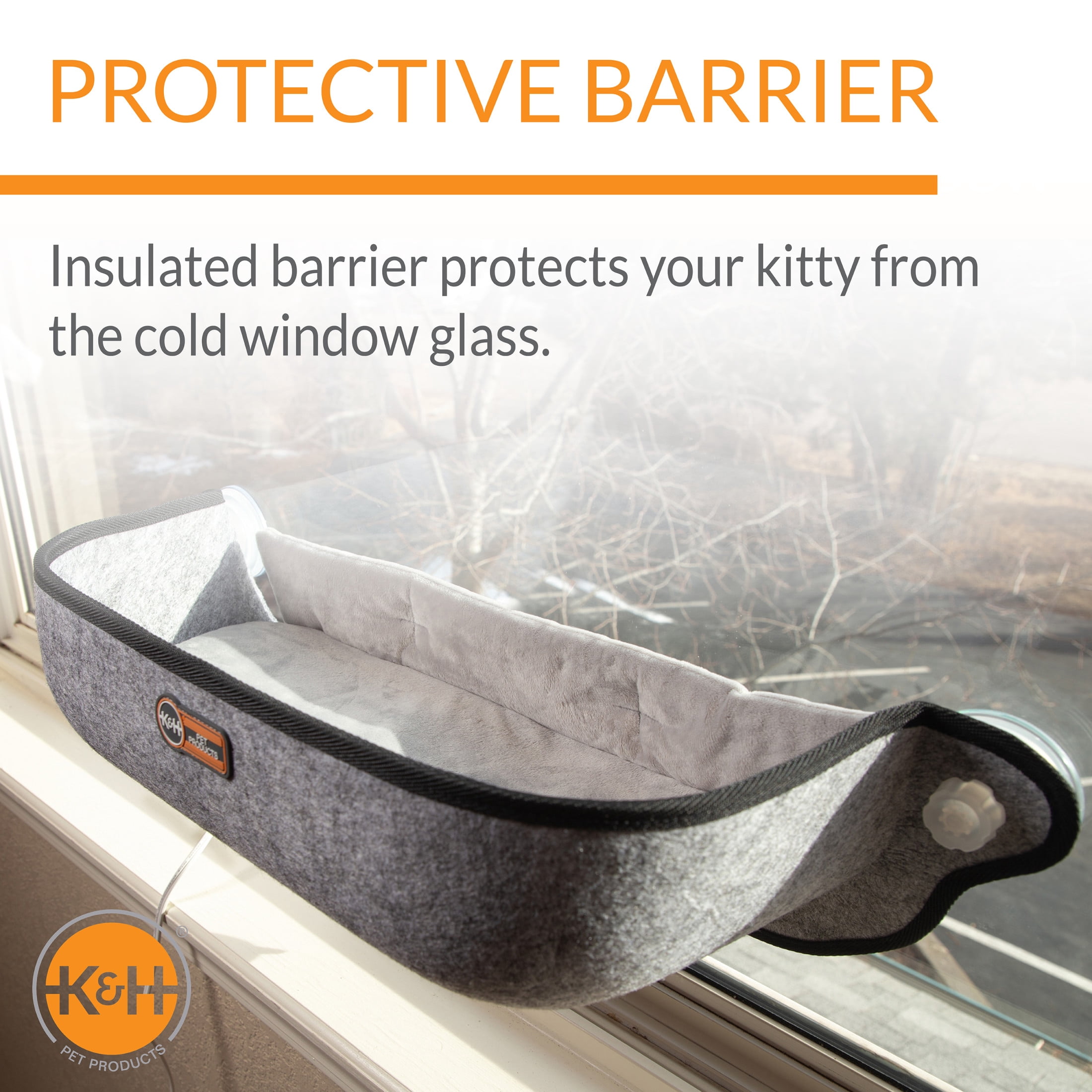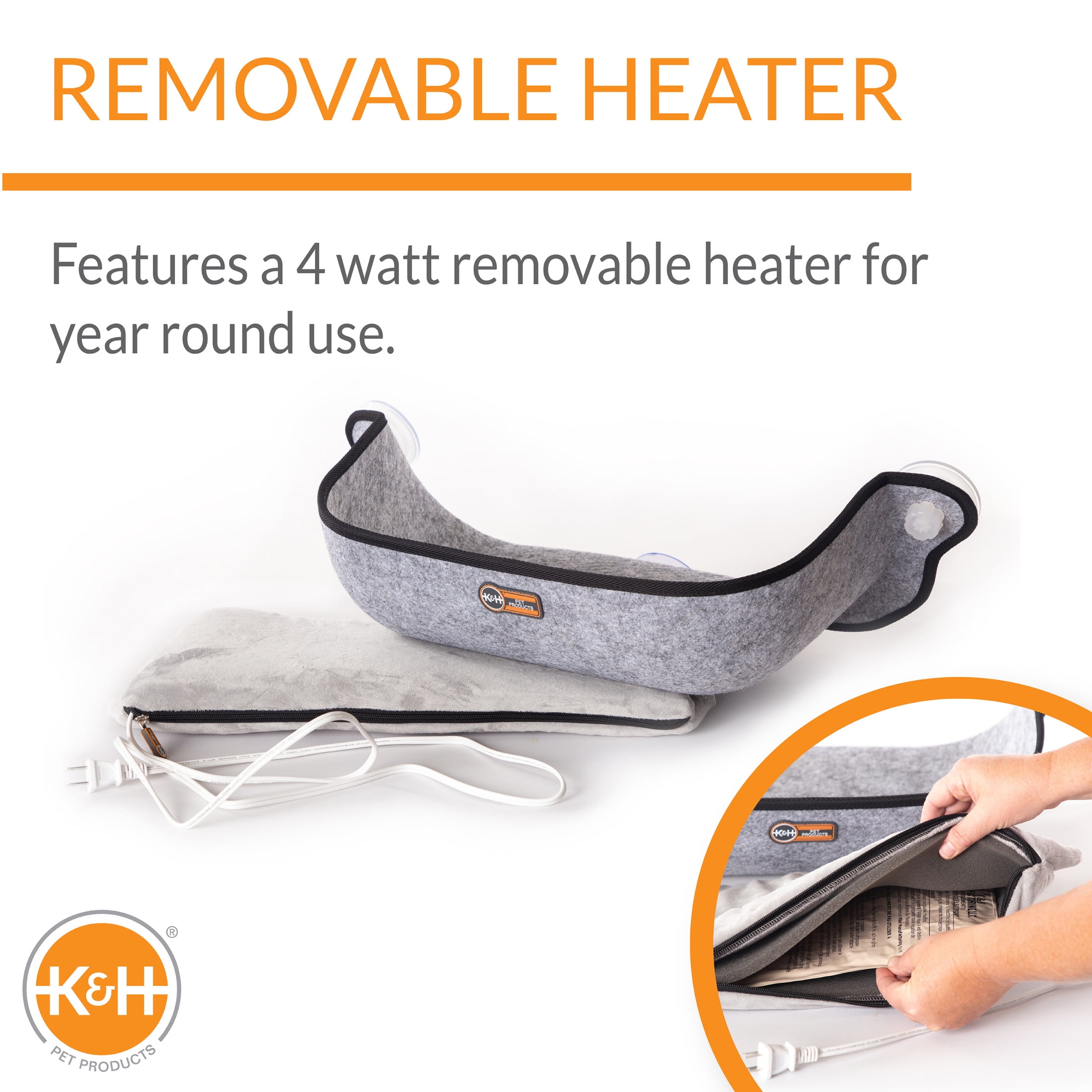 Heated cat hammock offers your cat warmth and comfort while sunbathing and viewing the outdoors Even the largest of cats are comfortable with the large 11” depth of this heated kitty sill Cat bed has an open top for easy access and provides a safe and private cat space; features a 4 watt removable heater for all season use Industrial-strength EZ Mount suction cups hold up to 60 lbs. and installs in seconds on glass windows or doors Electric cat bed has been tested & certified by MET Labs and exceeds USA/CA electrical safety standards; K&H doesn’t just use safety listed parts, we safety certify the entire product – For indoor household use with 110/120 volt electrical current only Designed by K&H with OVER 20 years of experience in creating safe, innovative, quality products for pets; one year limited warranty