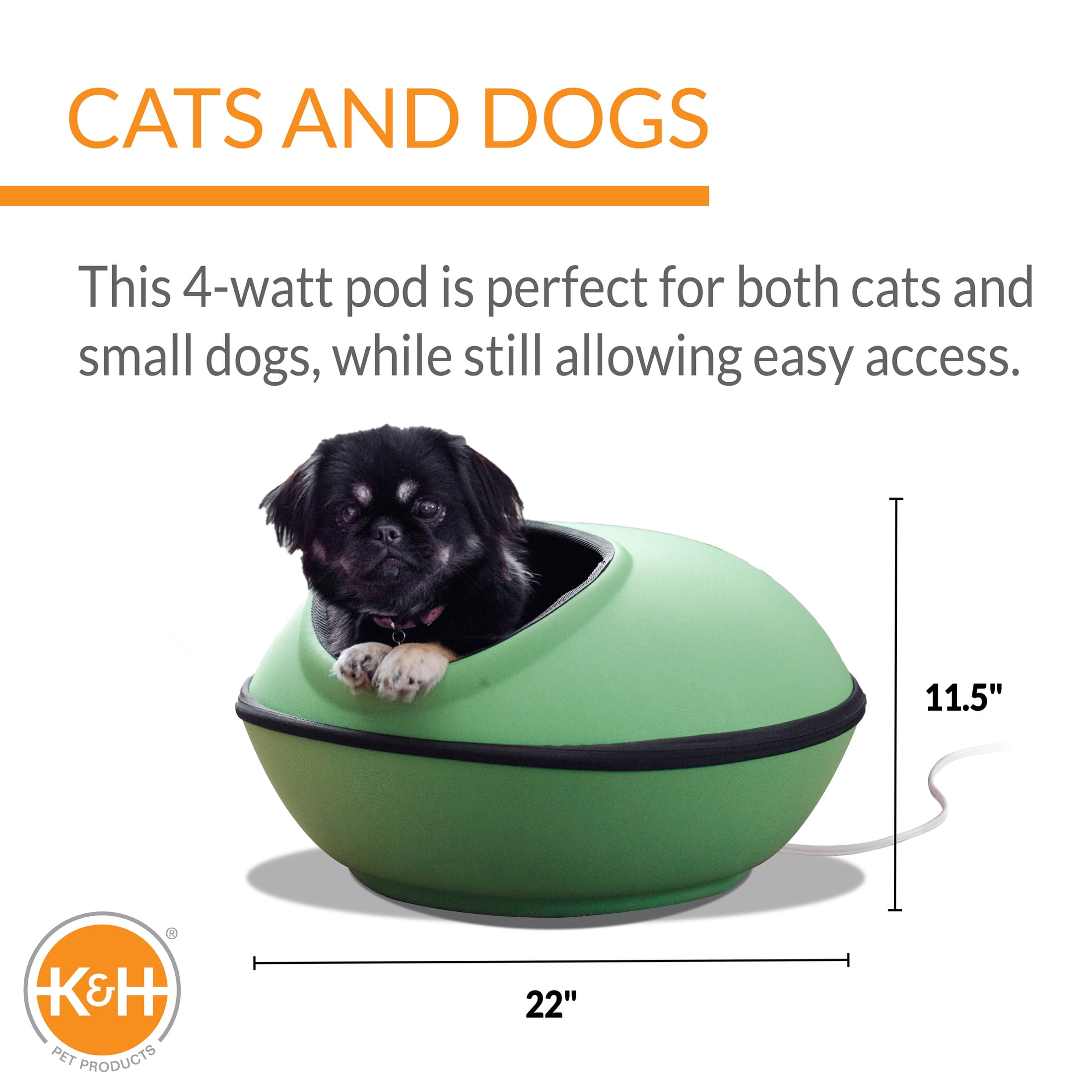 Heated pet bed provides low wattage gentle warmth and ultimate comfort in a modern enclosed cat bed or small breed dog bed This heated cat cave features a unique zip together bowl design surrounds your pet with comfort and privacy as they snooze Removable heater for use year-round, simply remove the heater in warmer months Removable cushion is machine washable for easy wash and care; heavy denier polyester exterior makes for easy surface cleaning This heated cat bed has been tested & certified by MET Labs and exceeds USA/CA electrical safety standards – K&H doesn’t just use safety listed parts; we safety certify the entire product Designed by K&H with OVER 20 years of experience in creating safe, innovative, quality products for pets