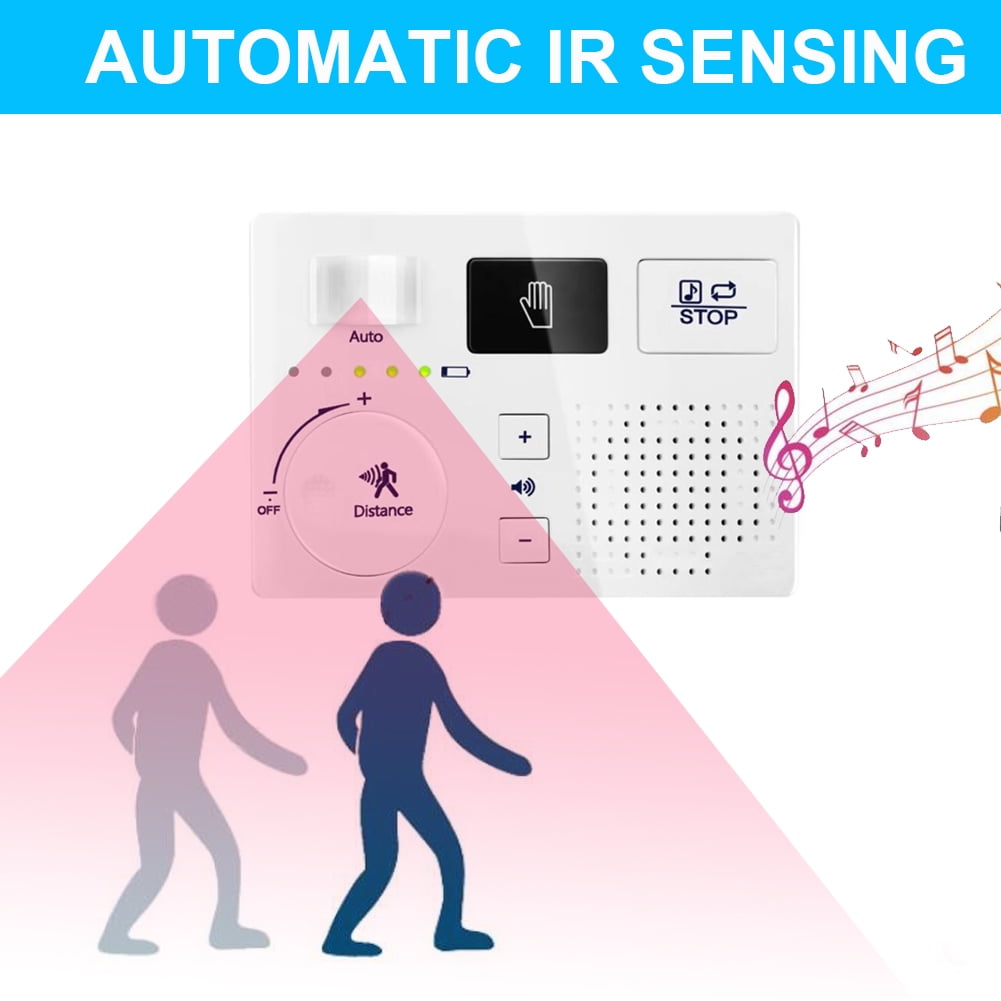 Motion Detected Device – It will play music with the sound of running water when you get close to the toilet. The sound box device comes with four pieces of music songs. Not only can creat little moments of calmness and relaxation, but also mask the sound of bathroom. No more water waste in bathroom(that insist on running the water for more privacy) after adding this device to bathroom. The noise is loud enough to mask the sounds, and it helps reduce other sounds as well. The sound box needs no electric cable, It can be placed anywhere or hung onto the wall, It will be activated by a motion sensor and fades out after 35s. It can be triggered by handscreen. Volume can be adjusted.