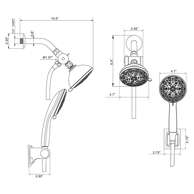 - Max Flow Rate: 1.8 GPM (6.8 LPM)