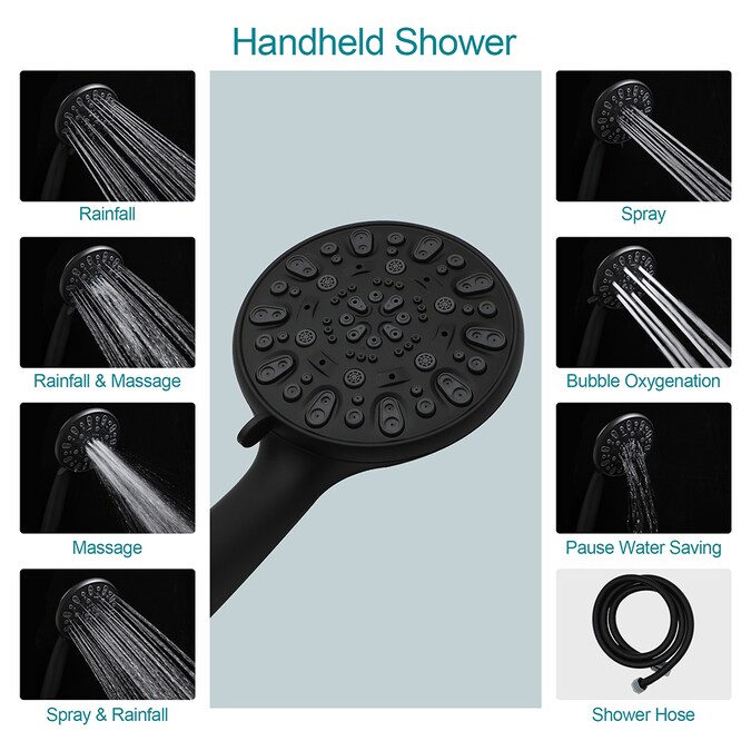 - Spray Technology: Rainfall,Massage,Spray,Bubble,Pause Water Saving,etc