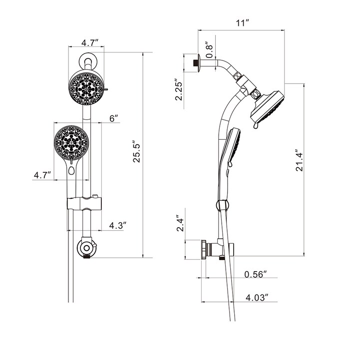 - This shower system features a 2-way water diverter for easy switching between two shower heads
