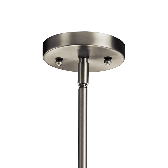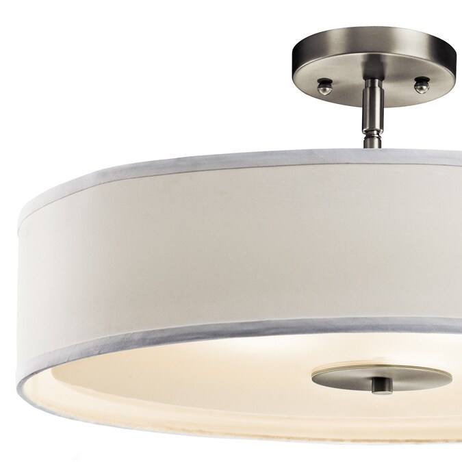 The clean lines and simple styling make this versatile 3 light semi flush ceiling fixture or pendant distinctive. Featuring a classic, Brushed Nickel finish, a White Microfiber shade and a Satin Etched Glass diffuser, this design can complement any space.