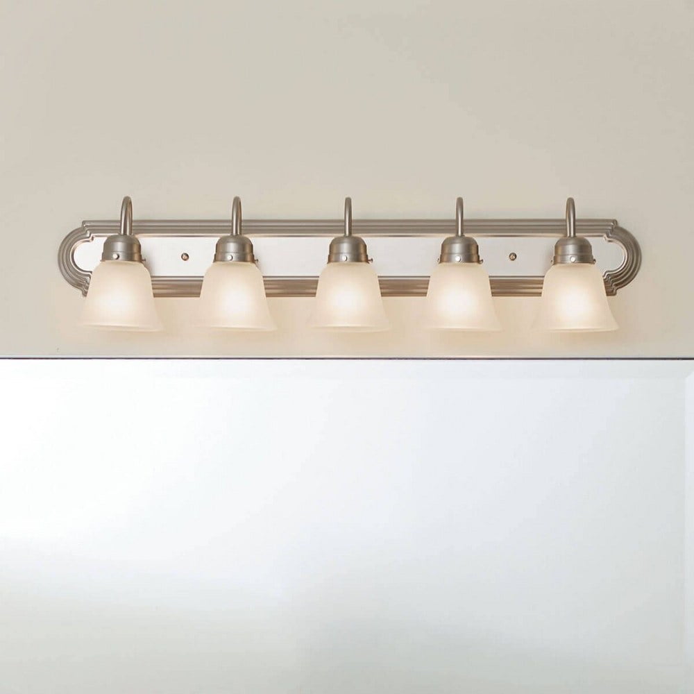 Kichler 36″ 5 Light Brushed Nickel Vanity Light with Satin Etched Glass Shades